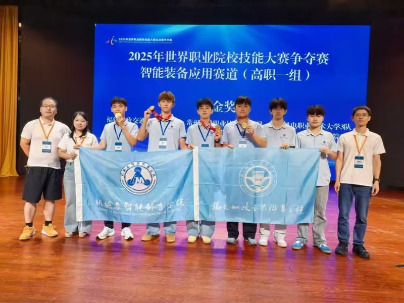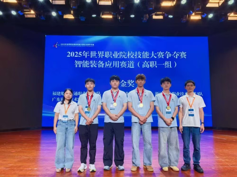 8月20日至26日,2025年世界職業(yè)院校技能大賽總決賽爭(zhēng)奪賽智能裝備應(yīng)用賽道(高職組)在浙江圓滿落幕。本次智能裝備應(yīng)用賽道匯聚全國(guó) 205 支隊(duì)伍同臺(tái)競(jìng)技,共同展開(kāi)專業(yè)技能的精英對(duì)決。由我院曾思通、童曉薇、胡恒、林俊杰等教師團(tuán)隊(duì)指導(dǎo),陳世衛(wèi)、陳育凱、林煒晨、鄧越四名學(xué)生組成的參賽團(tuán)隊(duì),憑借扎實(shí)的專業(yè)功底、默契的團(tuán)隊(duì)協(xié)作與穩(wěn)定的臨場(chǎng)發(fā)揮,成功斬獲該賽道金獎(jiǎng)。
