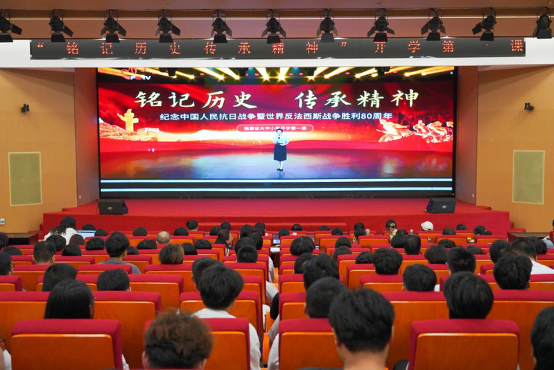 9月6日上午,《“銘記歷史,傳承精神——紀念中國人民抗日戰(zhàn)爭暨世界反法西斯戰(zhàn)爭勝利80周年”福建省大中小學開學第一課》在福建教育電視臺、學習強國福建平臺等播出。我院組織馬克思主義學院全體教師及各二級學院學生代表集中收看。