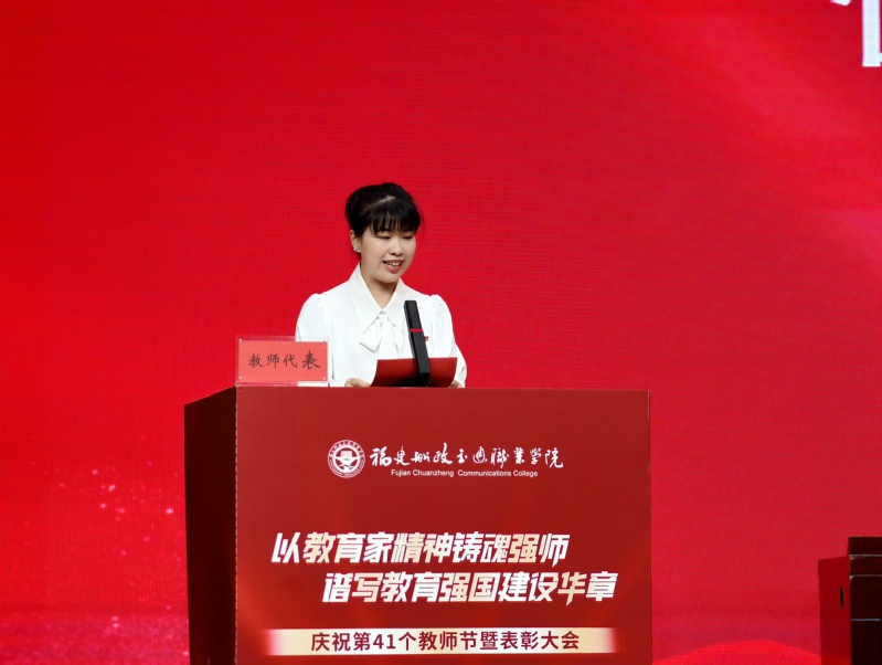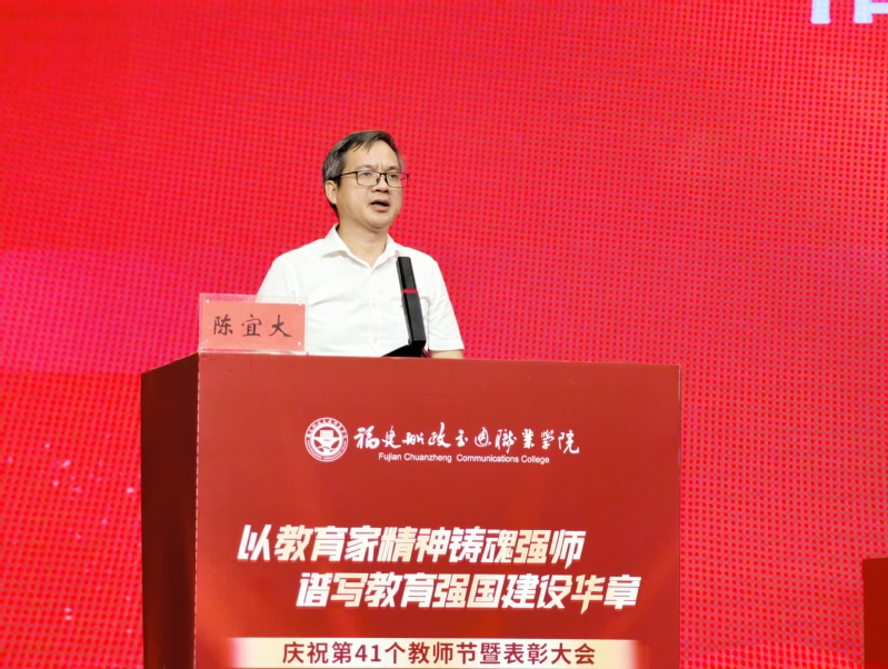 9月10日下午,我院舉行慶祝第41個教師節(jié)暨表彰大會。黨委書記陳宜大,黨委副書記、院長陳群,黨委副書記張輝,紀委書記謝建山,副院長陳常暉出席會議。會議由陳常暉主持。全體教職工、榮退人員代表、福建閩清職業(yè)中專學(xué)校代表、校友代表、學(xué)生代表歡聚一堂,共同參加此次會議。本次慶祝表彰大會采用線下會場和線上直播同步進行。