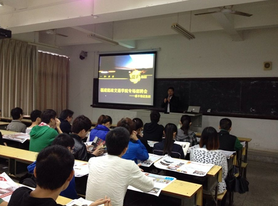 2014年4月23日在福建船政交通職業(yè)學(xué)院經(jīng)管大樓307教室為2014屆畢業(yè)生舉辦一場專場招聘會,由盛豐物流股份有限公司前來對交通經(jīng)濟(jì)系2014屆各專業(yè)應(yīng)屆畢業(yè)生進(jìn)行招聘。