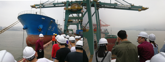 陳宏主任利用正在裝卸的集裝箱船,對同學(xué)們進(jìn)行現(xiàn)場教學(xué),講解船舶的基本知識,如船舶構(gòu)造和船身標(biāo)識等,加深同學(xué)們對課堂知識的認(rèn)識和理解。在現(xiàn)場教學(xué)的過程中,陳宏主任還與同學(xué)們進(jìn)行了現(xiàn)場互動,對學(xué)生進(jìn)行提問,考查課堂學(xué)習(xí)的效果