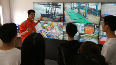 最后,同學(xué)們前往海盈碼頭的計劃科和中控室進(jìn)行參觀,了解碼頭作業(yè)計劃方面的知識,同時,對中控室的功能進(jìn)行學(xué)習(xí),同學(xué)們對監(jiān)控系統(tǒng)表現(xiàn)出濃厚的興趣,王助理也詳細(xì)為同學(xué)們講解了監(jiān)控系統(tǒng)的功能及應(yīng)用。