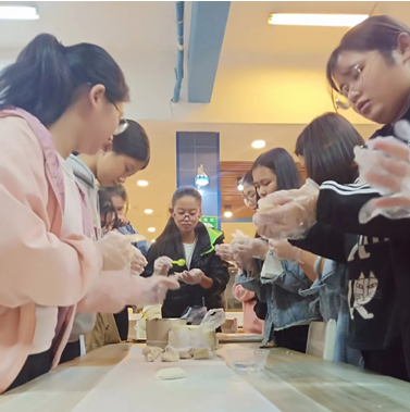大家從一開始的生疏,到后來的熟練;從對(duì)肉餡兒分量的拿捏到對(duì)造型的追求,同學(xué)們?cè)阱憻捵约旱耐瑫r(shí),也享受到了美味。當(dāng)一盤盤熱氣騰騰的餃子端上餐桌,那濃濃的餃子香,使同學(xué)們感受到家的溫暖。