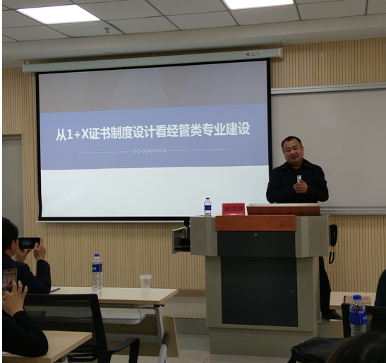 下午,中教暢享(北京)科技有限公司副總經(jīng)理潘洪鋒高級(jí)工程師作了《智慧商業(yè)時(shí)代經(jīng)管類專業(yè)建設(shè)》專題講座。他從X證書的作用、特點(diǎn)和類型,談到了1+X證書制度,并從1+X制度的設(shè)計(jì),論述經(jīng)管類專業(yè),特別是電子商務(wù)、市場(chǎng)營(yíng)銷等專業(yè)教育教學(xué)改革的思考。