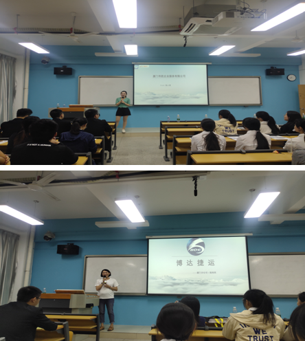 2019年11月1日晚7點,我系邀請:廈門昇捷物流有限公司,廈門博達捷運物流有限公司,沃克斯物流有限公司,廈門傳勝企業(yè)服務(wù)有限公司四家校友企業(yè)于南區(qū)31號樓308教室做企業(yè)招聘宣傳會。