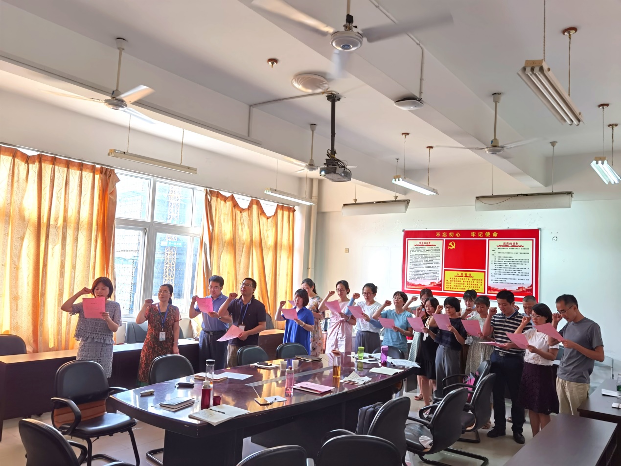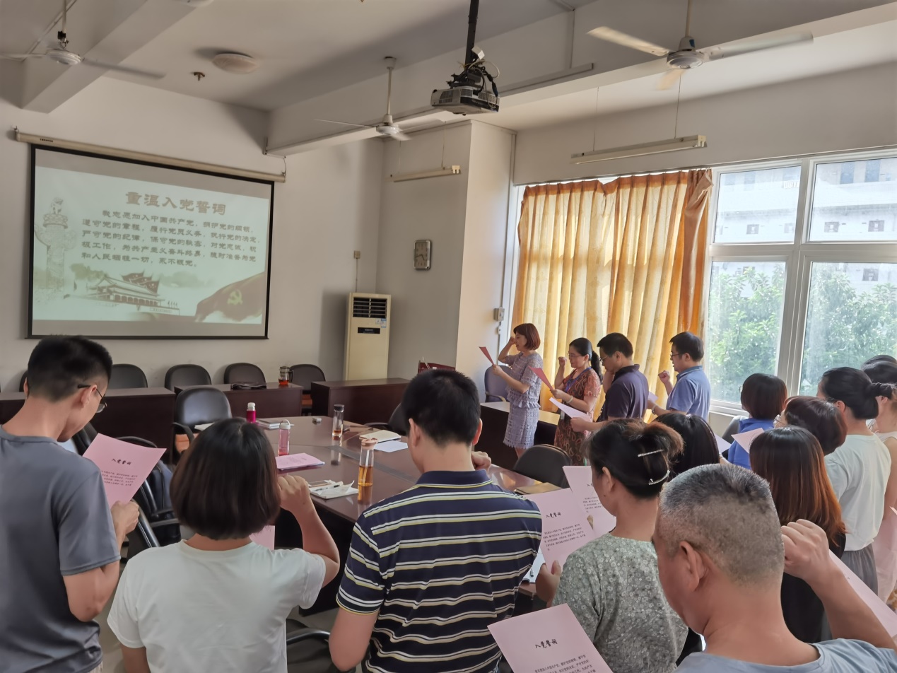 為紀(jì)念中國共產(chǎn)黨建黨99周年,激勵廣大黨員堅定理想信念,不忘初心、牢記使命,增強(qiáng)黨組織的凝聚力和戰(zhàn)斗力,我們進(jìn)行了今天的第二項議程,重溫入黨誓詞,向黨宣誓活動,第二黨支部全體黨員在林穎同志的領(lǐng)讀下,莊嚴(yán)地宣讀了入黨誓詞。