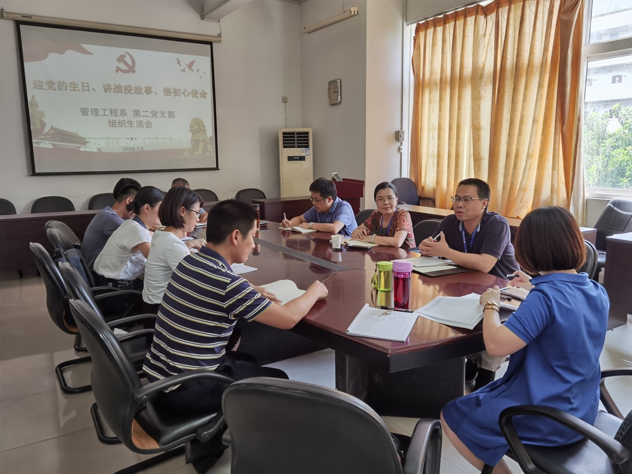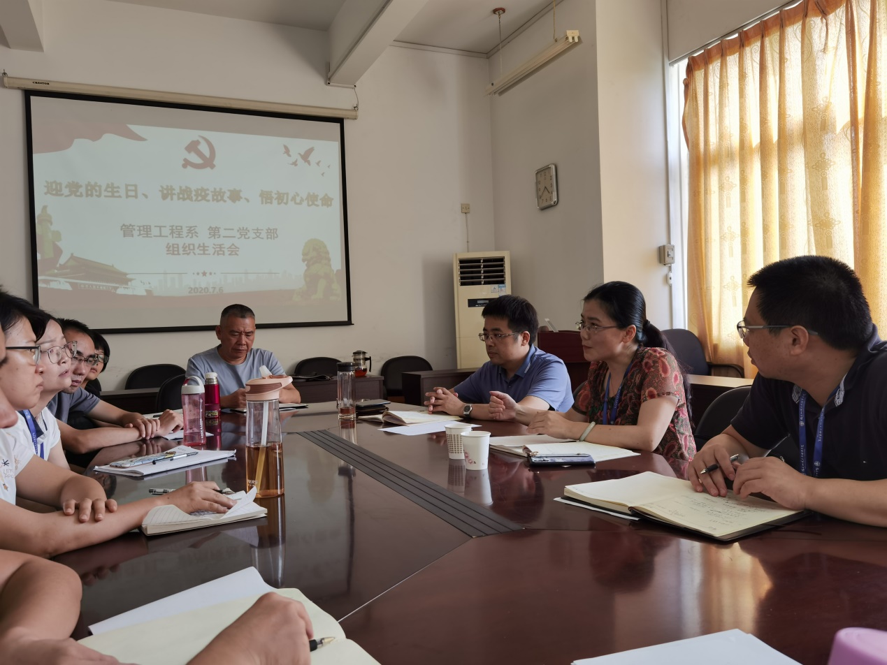 為了嚴(yán)格落實三會一課,以及每半年一次組織生活會的制度,管理工程系二支部于2020年7月6日,以慶祝建黨99周年為契機(jī),以“迎黨的生日、講戰(zhàn)疫故事、悟初心使命”為主題,開展黨員組織生活會。