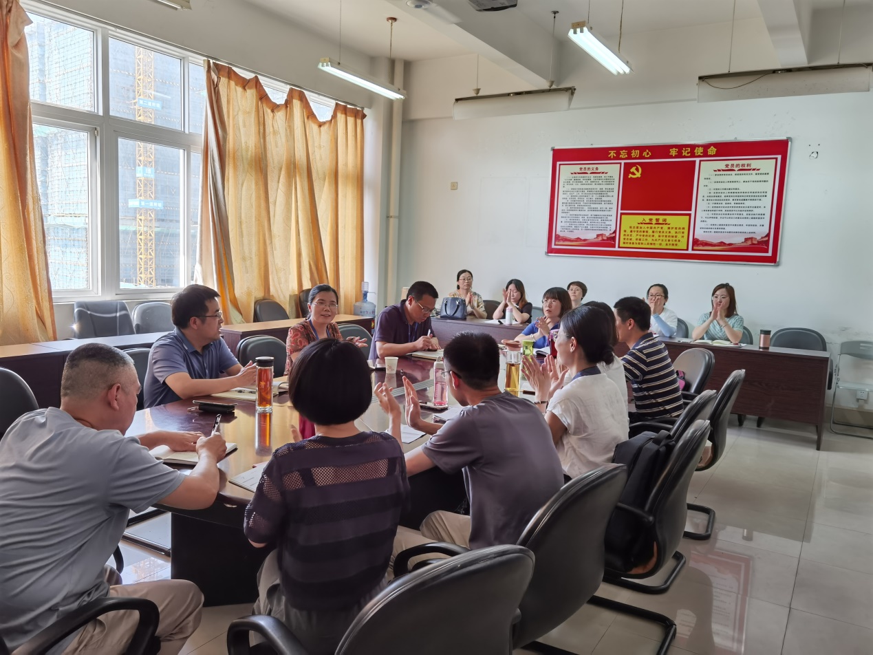 王登清同志首先發(fā)言:“非常榮幸陳艷紅副院長掛靠在我們支部,能夠?qū)h支部工作的開展進(jìn)行指導(dǎo)。疫情期間,輔導(dǎo)員在復(fù)學(xué)返校中做了大量的工作。專任教師線上教學(xué)盡職盡責(zé),承擔(dān)了大量的教學(xué)任務(wù)。教師黨員、輔導(dǎo)員、行政人員都有很強(qiáng)的戰(zhàn)斗力和凝聚力,我們的支部將會得到更大的發(fā)展。”