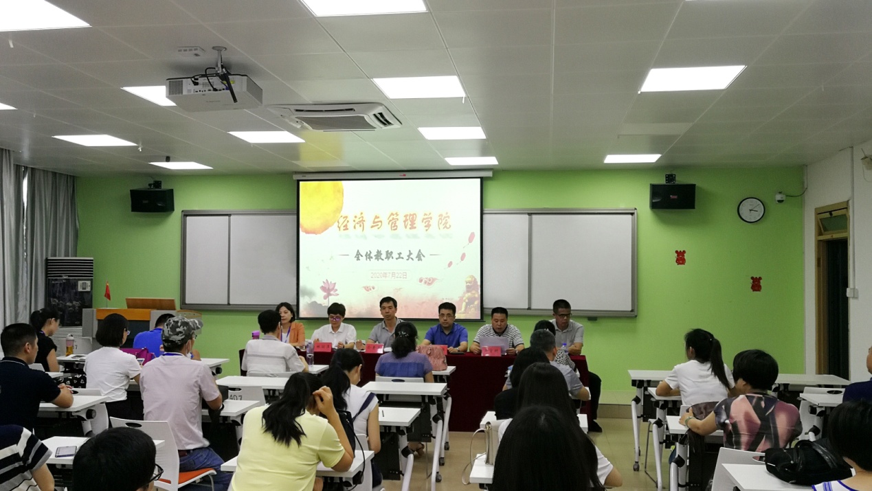 7月22日下午,新成立的經(jīng)濟(jì)與管理學(xué)院第一次全體教師大會在31#407舉行。經(jīng)濟(jì)與管理學(xué)院俞素平書記、房曰榮院長、林麗萍副書記、吳吉明副院長、林穎副院長、副處級組織員黃瑞秋及全體教職員工參加了會議。會議由經(jīng)濟(jì)與管理學(xué)院黨總支副書記林麗萍主持。