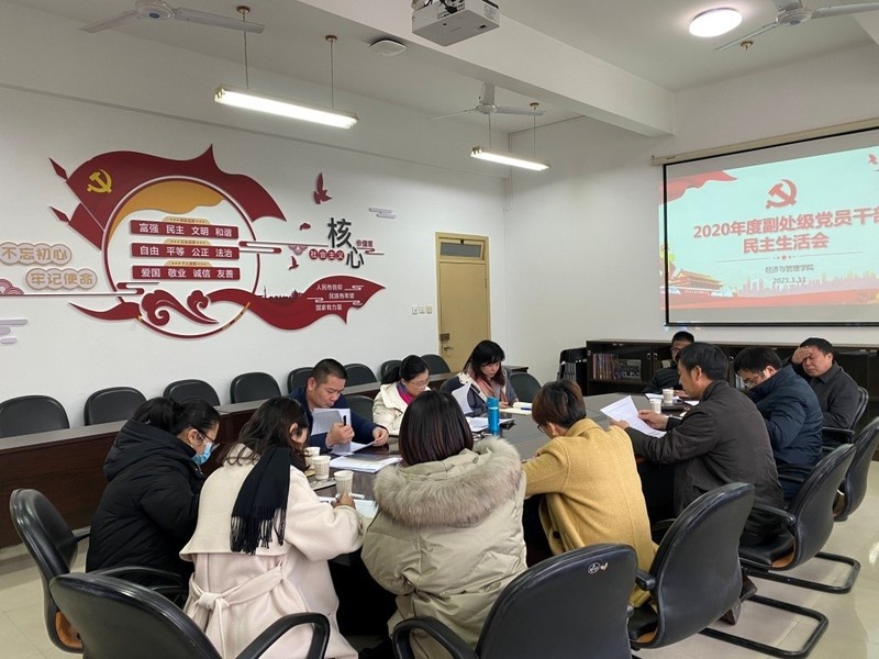 根據(jù)學院黨委的工作部署,2021年1月11日下午,經(jīng)濟與管理學院副處級領導干部民主生活會在31號樓412召開。學院民生活會督導組組長院黨委委員、副院長陳艷紅,督指導組聯(lián)系人院紀委副書記余土水,督導組成員院黨政辦副主任林品、院黨委組織部林倩茜到會指導。經(jīng)濟與管理學院黨總支書記俞素平、院長房曰榮、副書記林麗萍、副院長林穎、副院長吳吉明、副處級組織員黃瑞秋、分團委書記傅一丹及工作人員盧曉芬參加民主生活會。會議由經(jīng)管學院黨總支書記俞素平主持。
