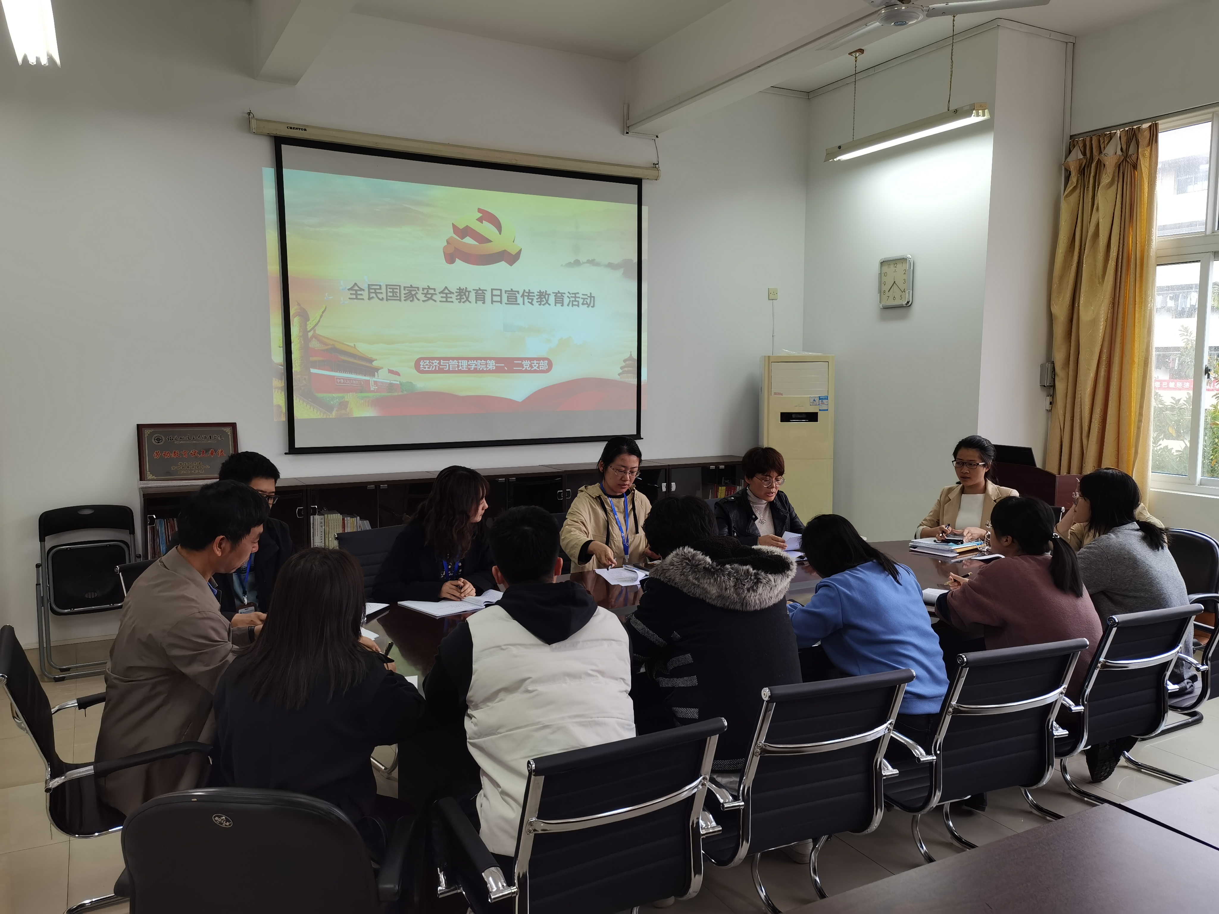 4月14日,在第六個國家安全教育日到來之際,為深入學(xué)習(xí)貫徹習(xí)近平法治思想,不斷增強(qiáng)師生的國家安全意識和法治意識,有效引導(dǎo)師生切實筑牢總體國家安全觀,經(jīng)濟(jì)與管理學(xué)院第一、第二黨支部組織召開專題會議,對2021年全民國家教育日宣傳教育活動進(jìn)行安排部署。