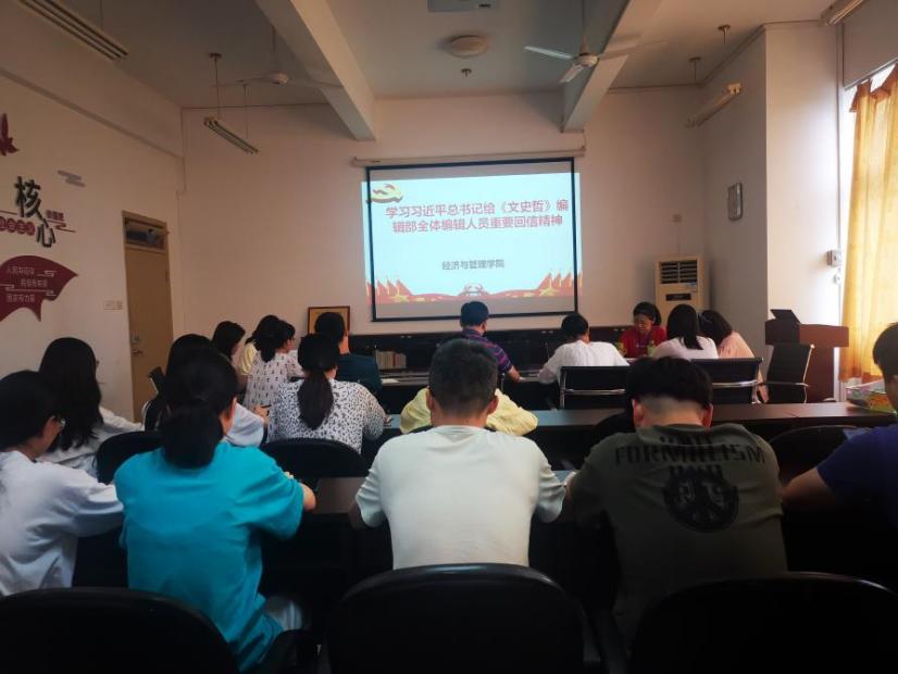 為了深刻領會學習習近平總書記重要回話精神,將教育的重要論述與黨史學習教育結合起來,推進理論創(chuàng)新,培養(yǎng)我院師生銳意進取的處事態(tài)度。經濟與管理學院組織全體師生于6月10日展開深入學習貫徹習近平總書記給《文史哲》編輯部全體人員重要回信精神。