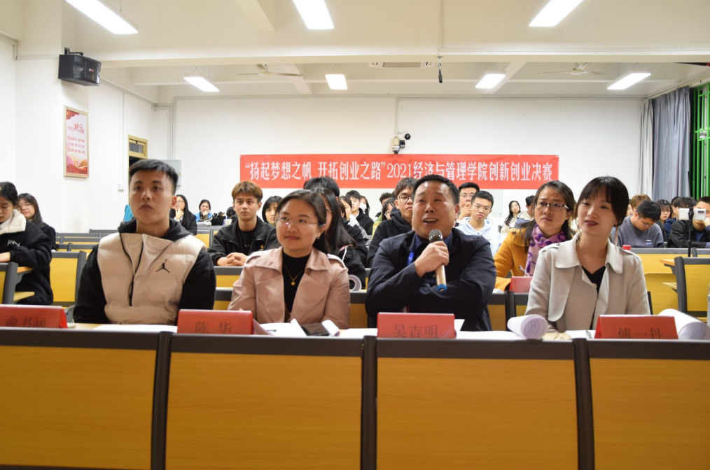 比賽結(jié)束后,經(jīng)濟(jì)與管理學(xué)院副院長吳吉明對(duì)本次比賽進(jìn)行總結(jié)點(diǎn)評(píng)。他對(duì)項(xiàng)目的創(chuàng)意性表示肯定,并從項(xiàng)目路演要求、商業(yè)模式、團(tuán)隊(duì)構(gòu)建等方面對(duì)項(xiàng)目進(jìn)行了指導(dǎo),引導(dǎo)培養(yǎng)學(xué)生建立創(chuàng)新創(chuàng)業(yè)意識(shí)和提升創(chuàng)新創(chuàng)業(yè)能力。