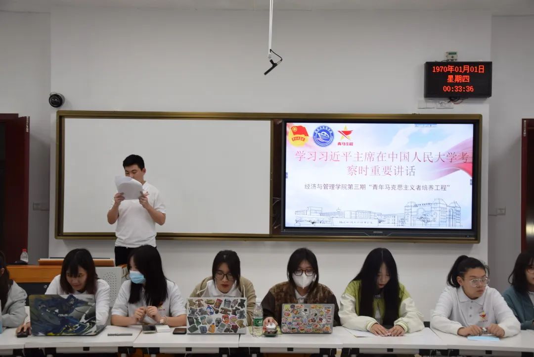 為深入學(xué)習(xí)貫徹習(xí)近平總書記系列重要講話精神,落實(shí)“青年馬克思主義者培養(yǎng)工程”要求,大力推進(jìn)我院共青團(tuán)的任務(wù),努力培養(yǎng)一批有理想、有道德、有文化、有紀(jì)律的骨干人才,2022年4月30日——5月2日,經(jīng)濟(jì)與管理學(xué)院舉行了第三期“青年馬克思主義者培養(yǎng)工程”暨“團(tuán)學(xué)干部儲(chǔ)備班”。參加本次開班儀式的有校團(tuán)委書記陳慧、經(jīng)濟(jì)與管理學(xué)院團(tuán)委書記傅一丹、青馬班班主任謝鑫以及本期青馬班全體成員。