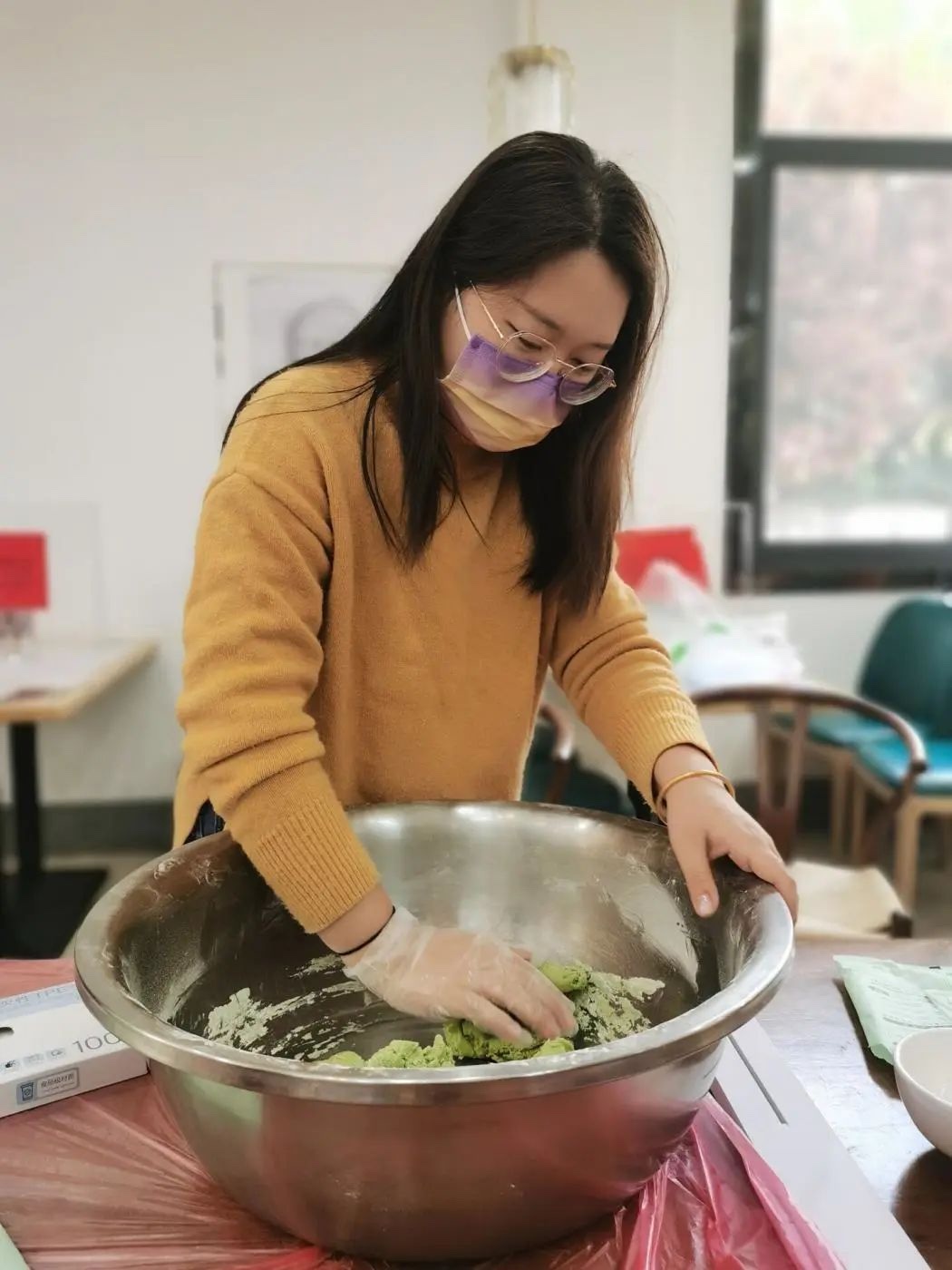 前幾天天下著雨,陰沉沉的,學生的思鄉(xiāng)情緒倍增?!袄蠋?,清明節(jié)可以請假回家嗎?”學生的話語牽動著我的心,是啊,每逢佳節(jié)倍思親,因為疫情原因,學生暫時沒能夠回家。為了緩解同學們在校的思鄉(xiāng)之情,我們能為學生做些什么。回想起同學說過,清明節(jié)的時候回家總可以吃到青團,今年回不了家就吃不到了。“對呀,我們可以給學生做青團,也可以讓學生參與進來一起做!”找材料,找位置,買材料,最后敲定在食堂一樓做青團。我們做青團的活動就這么展開了,買材料,找材料,開始和青團的面團,和好的面團后,一步一步教學生包青團,做完青團大家都非常期待等待著自己特色的青團出爐,吃到自己親手做的青團,還帶回去給同學吃。看著同學們吃得津津有味,臉上又露出了開心的笑臉,看著他們這么開心,我的心情也跟著開心起來了。