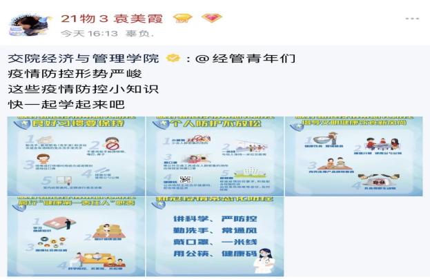 為了抵制疫情來襲,經(jīng)濟(jì)與管理學(xué)院青年突擊隊用自己的方式逆風(fēng)迎戰(zhàn)。4月本應(yīng)春光明媚充滿希望,但一場突如其來的疫情,打亂了我們的計劃。我們興致勃勃討論過的春日之約,變成眾志成城全力抗疫。這場戰(zhàn)疫里,有一群青年志愿者的身影,格外打動人心。為打贏疫情防控阻擊戰(zhàn)無私奉獻(xiàn),因為我們堅信,疫情終會過去,勝利就在眼前。讓我們用自己的方式,凝聚戰(zhàn)“疫”力量。