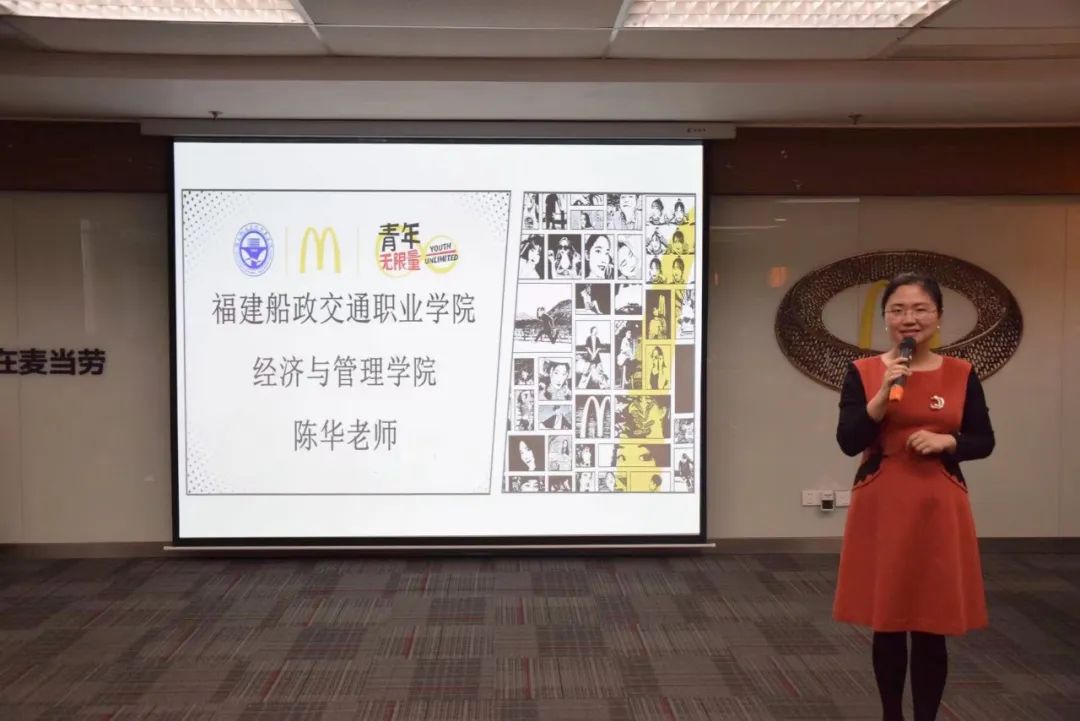 福建麥當(dāng)勞人力資源經(jīng)理黃燕平女士為開班儀式致辭,她提到麥當(dāng)勞一直致力于“我們就相信年輕人“的人員品牌主張,青春無極限,告訴同學(xué)們要在心中種下一顆種子,堅定踏實地走好每一步,相信定會不負(fù)眾望。經(jīng)濟(jì)與管理學(xué)院市場營銷教研室主任陳華老師希望同學(xué)們充分利用學(xué)校和麥當(dāng)勞雙方提供的優(yōu)質(zhì)資源培養(yǎng)自己,珍惜來之不易的學(xué)習(xí)機(jī)會,通過自身的勤奮努力,將理論和實踐結(jié)合起來,在“麥當(dāng)勞訂單班”中實現(xiàn)人生的第一次彎道超車。