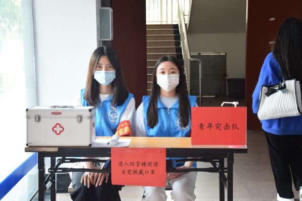 經(jīng)濟(jì)與管理學(xué)院疫情防控青年突擊隊(duì)在面對(duì)疫情時(shí),積極響應(yīng)號(hào)召,主動(dòng)投身于疫情防控任務(wù)中,用青春的力量共同戰(zhàn)“疫”。青年突擊隊(duì)隊(duì)員們,以嚴(yán)謹(jǐn)負(fù)責(zé)的工作態(tài)度執(zhí)行著疫情防控工作。維持著同學(xué)們的出入秩序、測(cè)量體溫、提醒大家在公共場(chǎng)所佩戴口罩,他們用實(shí)際行動(dòng)為同學(xué)們的健康筑起一道道保障線。