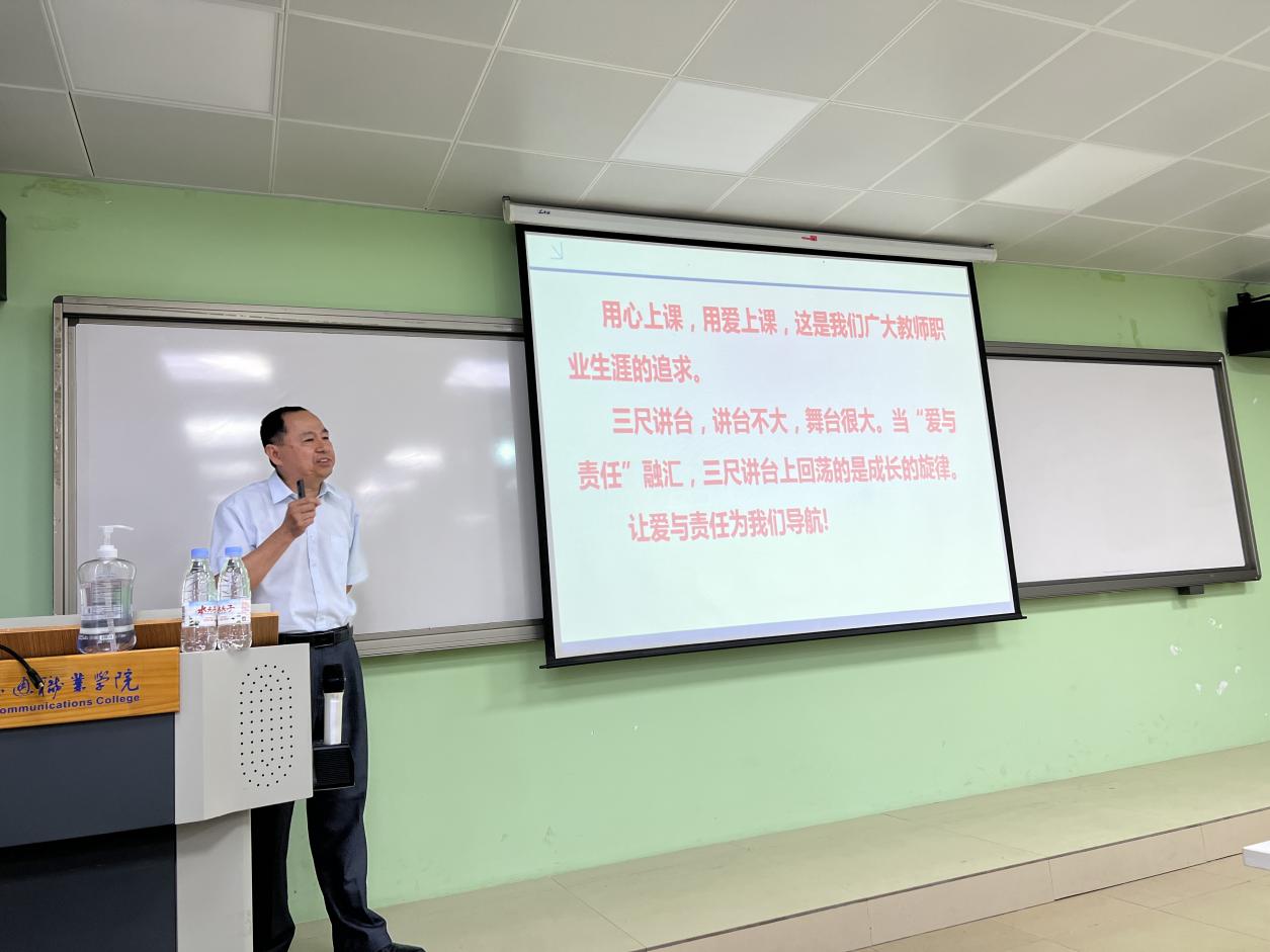 為進一步加強師德師風建設,落實立德樹人根本任務,提升教師職業(yè)道德水平,引導教師切實成為學生全面發(fā)展、健康成長的指導者、引路人,2022年6月1日,我院邀請從教四十載的陳宏教授為全體教師做題為“踐行師德規(guī)范,站穩(wěn)三尺講臺”的師德師風專題講座。講座由院長房曰榮主持。