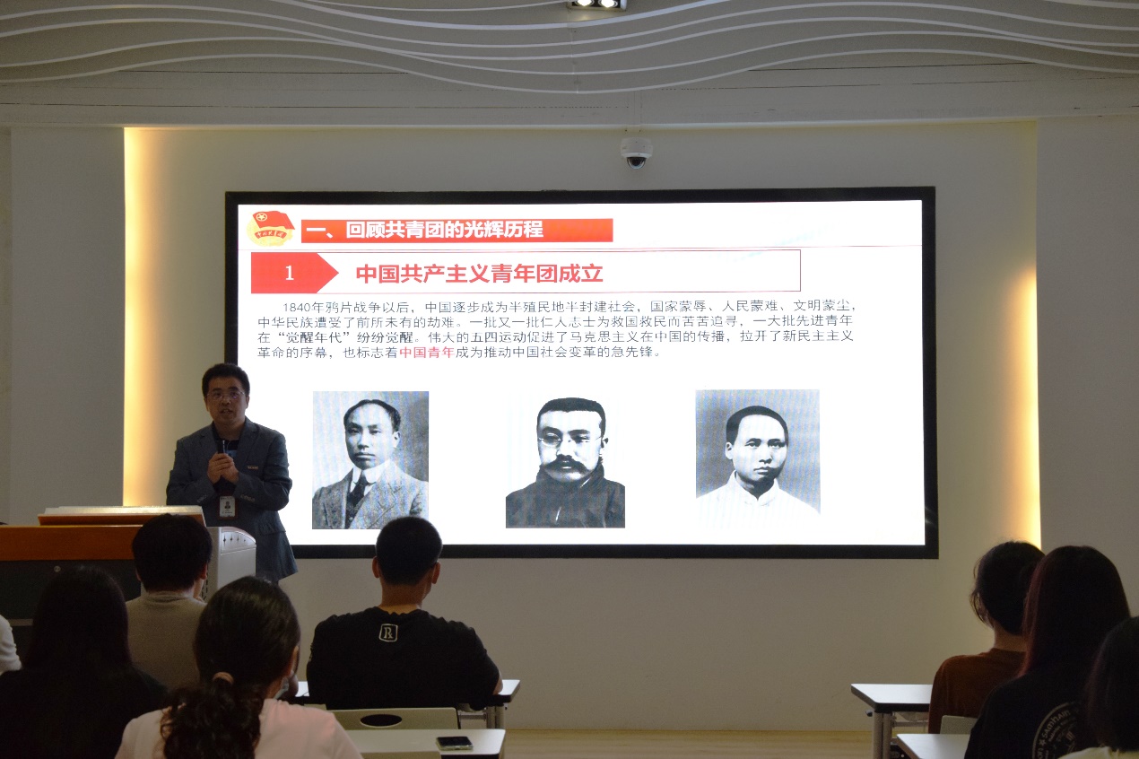為進(jìn)一步加強(qiáng)團(tuán)員青年意識(shí)教育,增強(qiáng)團(tuán)員青年組織觀念,弘揚(yáng)“五四”精神,團(tuán)結(jié)引領(lǐng)學(xué)院學(xué)生堅(jiān)定跟黨走、建功新時(shí)代。院長房曰榮教授開展“建團(tuán)100周年” 形勢與政策專題課。