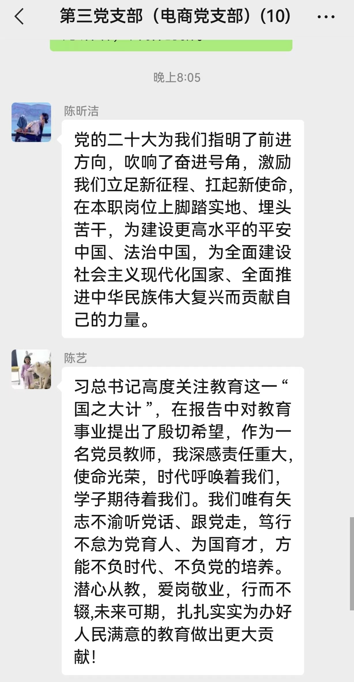 活動(dòng)分兩階段進(jìn)行。第一階段,支部書(shū)記吳吉明帶領(lǐng)全體黨員同志學(xué)習(xí)了《中共中央關(guān)于認(rèn)真學(xué)習(xí)宣傳貫徹黨的二十大精神的決定》,深刻領(lǐng)會(huì)黨的二十大精神實(shí)質(zhì),領(lǐng)會(huì)報(bào)告提出的一系列新觀點(diǎn)、新思想、新戰(zhàn)略和新要求,尤其對(duì)大會(huì)的主題、第一要?jiǎng)?wù)、一項(xiàng)“中心任務(wù)”、三個(gè)“務(wù)必”、五個(gè)“重大原則”、五個(gè)“必由之路”、六個(gè)“必須堅(jiān)持”等重要論述進(jìn)行了深入學(xué)習(xí)。第二階段,支部黨員分享了自己的學(xué)習(xí)心得,結(jié)合自身工作實(shí)際開(kāi)展了專(zhuān)題研討。黨員們表示一定要切實(shí)把握黨的二十大精神的核心要義和實(shí)踐要求,要永懷信仰之心,發(fā)現(xiàn)真理,堅(jiān)持真理,不斷探索,在各自崗位上做出優(yōu)秀業(yè)績(jī)。