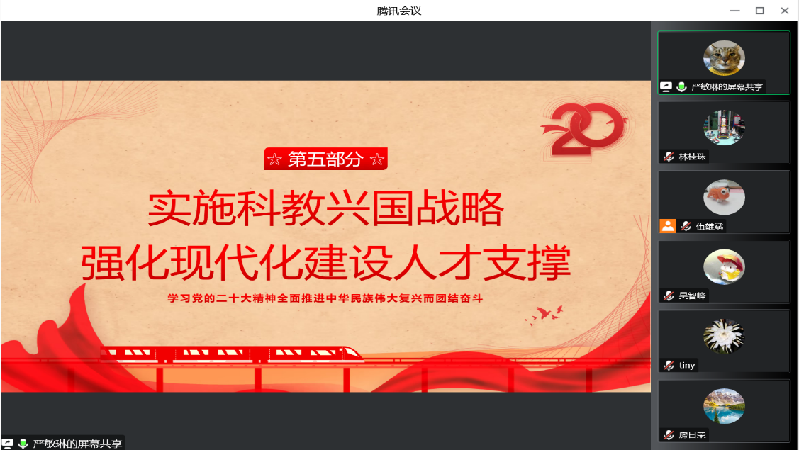 最后,嚴(yán)敏琳同志總結(jié),全體黨員要深刻學(xué)習(xí)領(lǐng)會黨的二十大報告中的新觀點(diǎn)、新論斷、新思想、新戰(zhàn)略、新要求,及時做好總結(jié),切實(shí)把黨的二十大精神貫徹落實(shí)到支部工作、教學(xué)工作、科研工作、班主任工作、防疫工作的全過程中,勇于擔(dān)當(dāng)作為,積極踐行為黨育人、為國育才使命,為科教興國唱響職教強(qiáng)音。