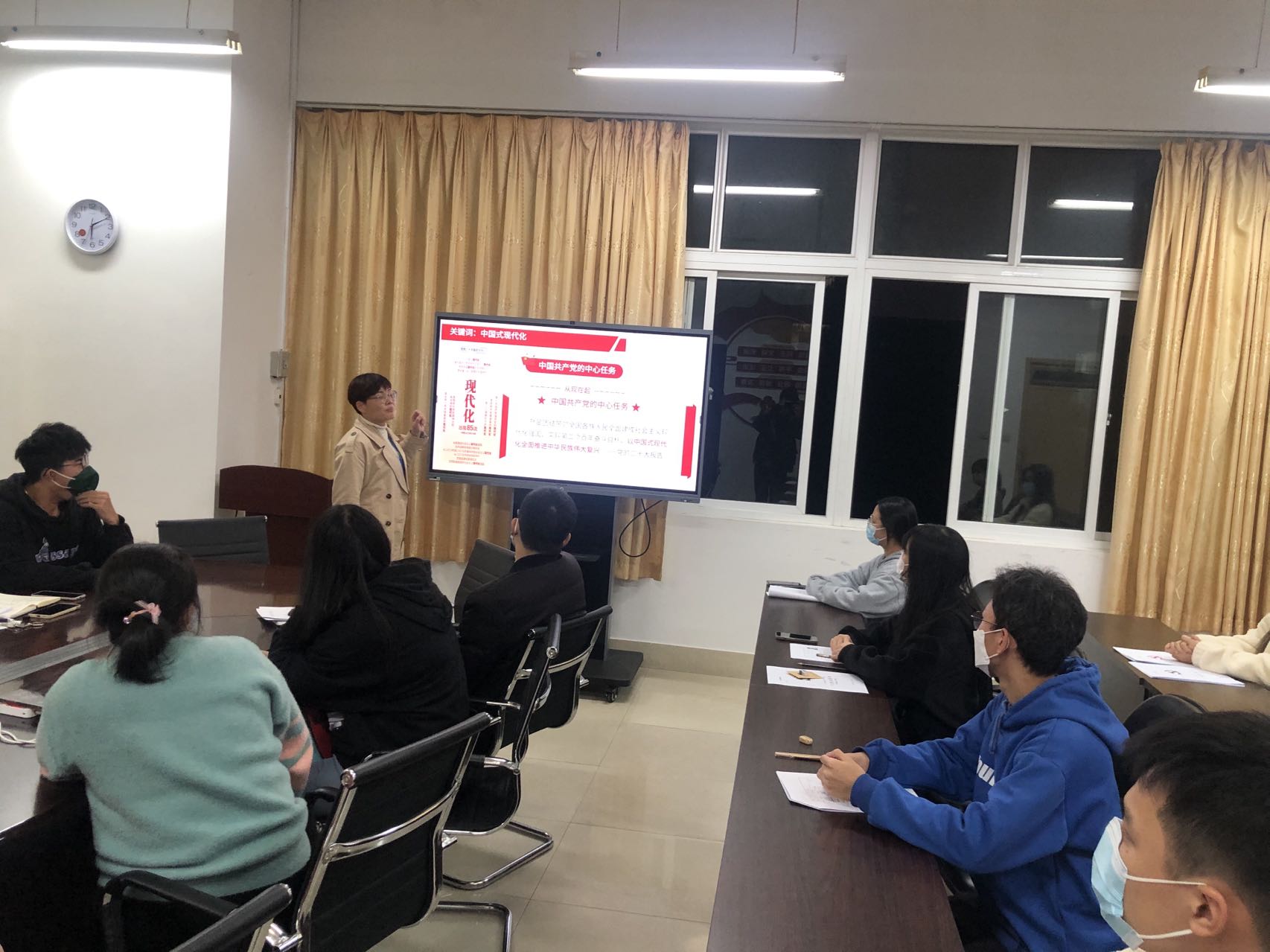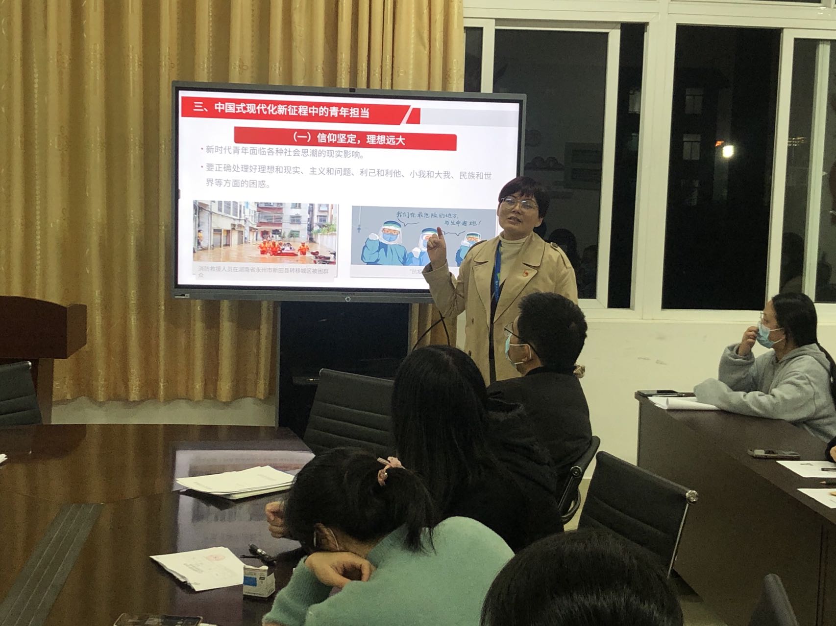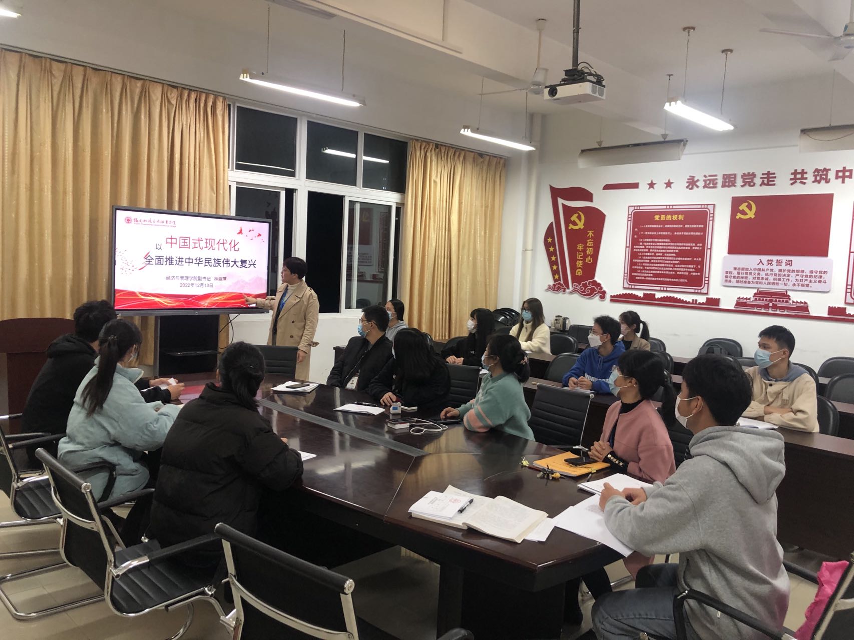 為深入學(xué)習(xí)貫徹落實(shí)黨的二十大重要講話精神, 12月13日下午,黨總支副書記、第一黨支部書記林麗萍老師在求實(shí)樓412會(huì)議室召開“以中國(guó)式現(xiàn)代化全面推進(jìn)中華民族偉大復(fù)興”為主題的黨課,支部?jī)?nèi)全體黨員、入黨積極分子參加會(huì)議。