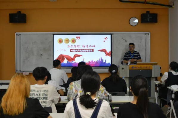 我院院長(zhǎng)房曰榮向同學(xué)們介紹了中國(guó)共產(chǎn)黨的指導(dǎo)思想,黨的指導(dǎo)思想是指導(dǎo)中國(guó)共產(chǎn)黨全部活動(dòng)的理論體系,主要包括:馬克思列寧主義、毛澤東思想、鄧小平理論 “三個(gè)代表”重要思想、科學(xué)發(fā)展觀、習(xí)近平新時(shí)代中國(guó)特色社會(huì)主義思想。黨的指導(dǎo)思想是黨對(duì)于整個(gè)社會(huì)歷史發(fā)展規(guī)律的基本認(rèn)識(shí),是黨的全部理論觀點(diǎn),是黨的政治建設(shè)、思想建設(shè)、組織建設(shè)、作風(fēng)建設(shè)紀(jì)律建設(shè)和深入推進(jìn)反腐敗斗爭(zhēng)的理論基礎(chǔ),其重要性可見一斑。他希望同學(xué)們能認(rèn)真學(xué)習(xí)貫徹黨的指導(dǎo)思想,作為青年大學(xué)生要堅(jiān)持不懈用習(xí)近平新時(shí)代中國(guó)特色社會(huì)主義思想武裝頭腦、指導(dǎo)實(shí)踐、推動(dòng)工作。