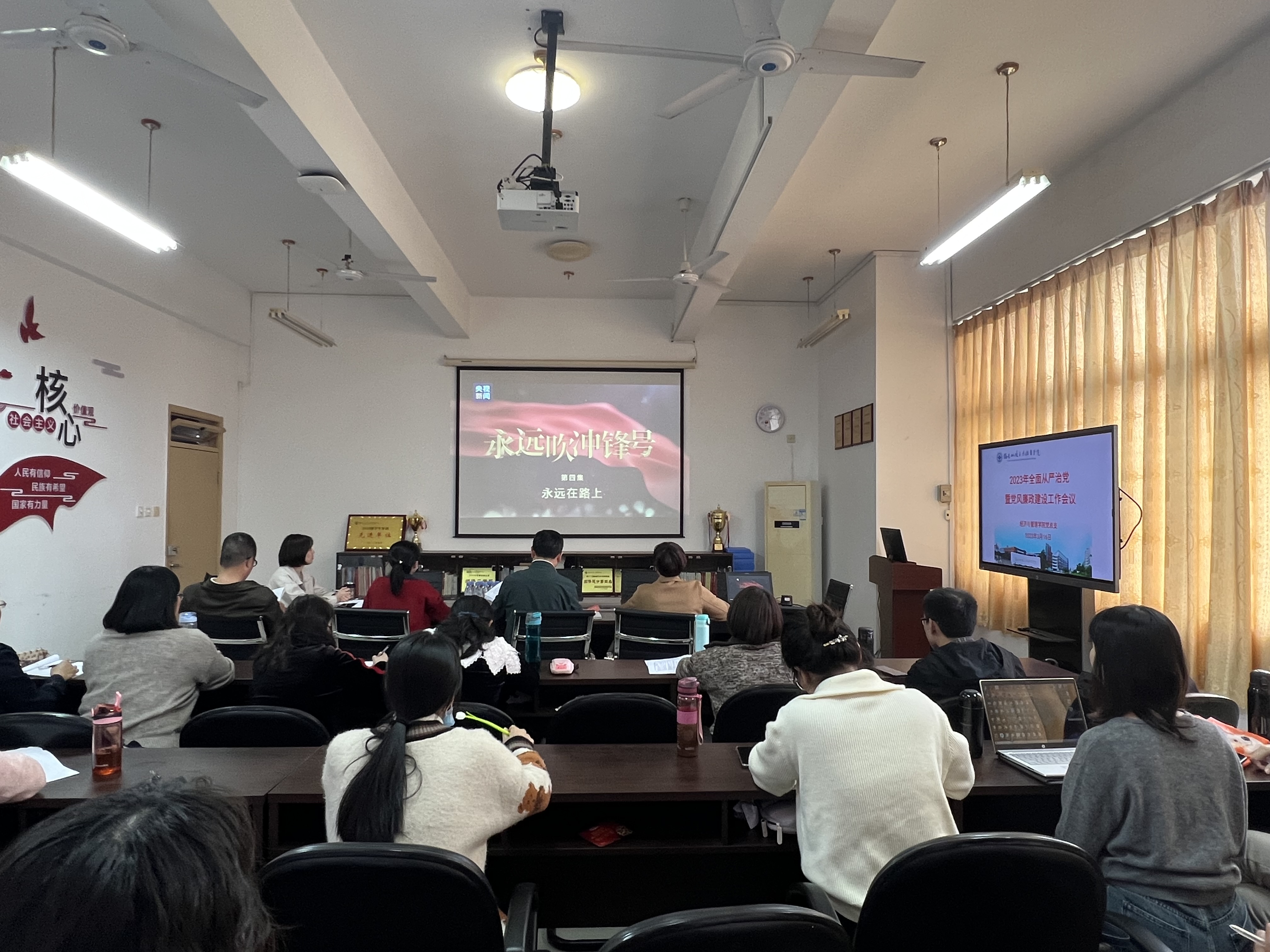 會議集中觀看了廉政教育警示片《永遠(yuǎn)吹沖鋒號》。