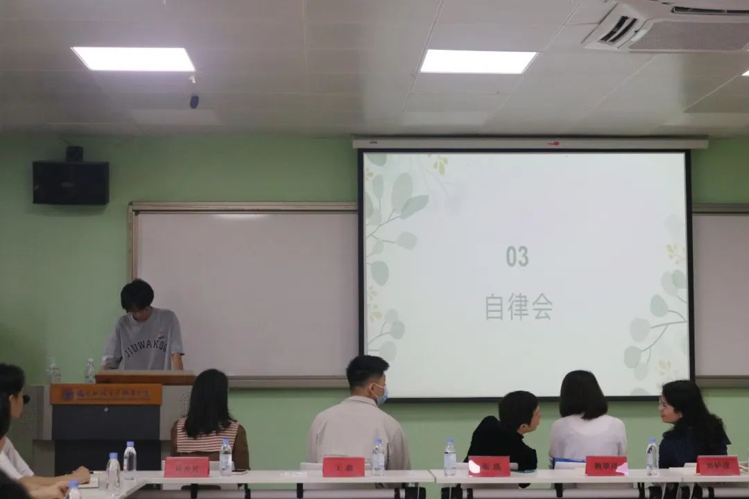 我院團(tuán)委兼職副書(shū)記(學(xué)生)邱航首先詳細(xì)介紹了我院學(xué)生會(huì)“四梁八柱”的工作體系、“五好”的學(xué)生干部選拔標(biāo)準(zhǔn)與“全心全意為同學(xué)服務(wù)”的宗旨。他表示,學(xué)生會(huì)要把服務(wù)同學(xué)成長(zhǎng)、學(xué)校工作高質(zhì)量發(fā)展統(tǒng)一起來(lái),不斷提升組織效率,協(xié)助學(xué)校解決同學(xué)在學(xué)習(xí)、生活中遇到的實(shí)際問(wèn)題。積極配合黨組織開(kāi)展活動(dòng),帶動(dòng)學(xué)生在實(shí)踐中提高政治素養(yǎng)。