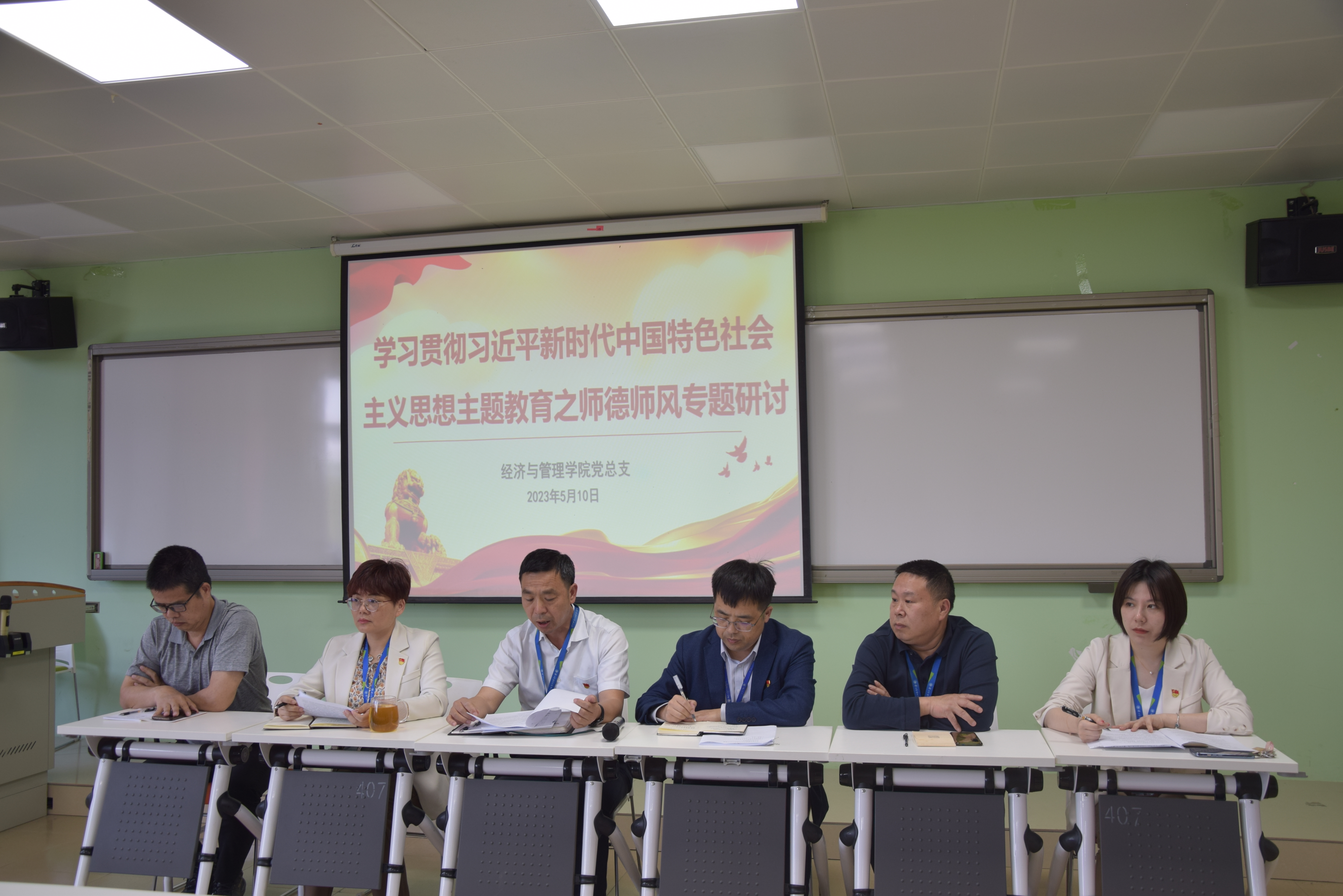 為深入貫徹落實(shí)黨的二十大精神,推進(jìn)學(xué)習(xí)貫徹習(xí)近平新時(shí)代中國(guó)特色社會(huì)主義思想主題教育走深走實(shí),進(jìn)一步加強(qiáng)教師師德師風(fēng)建設(shè),不斷提升教師思想政治素質(zhì)和職業(yè)道德水平,牢牢把握師德師風(fēng)作為評(píng)價(jià)教師隊(duì)伍素質(zhì)的第一標(biāo)準(zhǔn),積極弘揚(yáng)高尚師德,5月10日,經(jīng)濟(jì)與管理學(xué)院召開學(xué)習(xí)貫徹習(xí)近平新時(shí)代中國(guó)特色社會(huì)主義思想主題教育之師德師風(fēng)專題研討會(huì)師德師風(fēng)專題學(xué)習(xí)研討會(huì)。會(huì)議由院長(zhǎng)房曰榮主持,學(xué)院全體教職工參加了此次活動(dòng)。