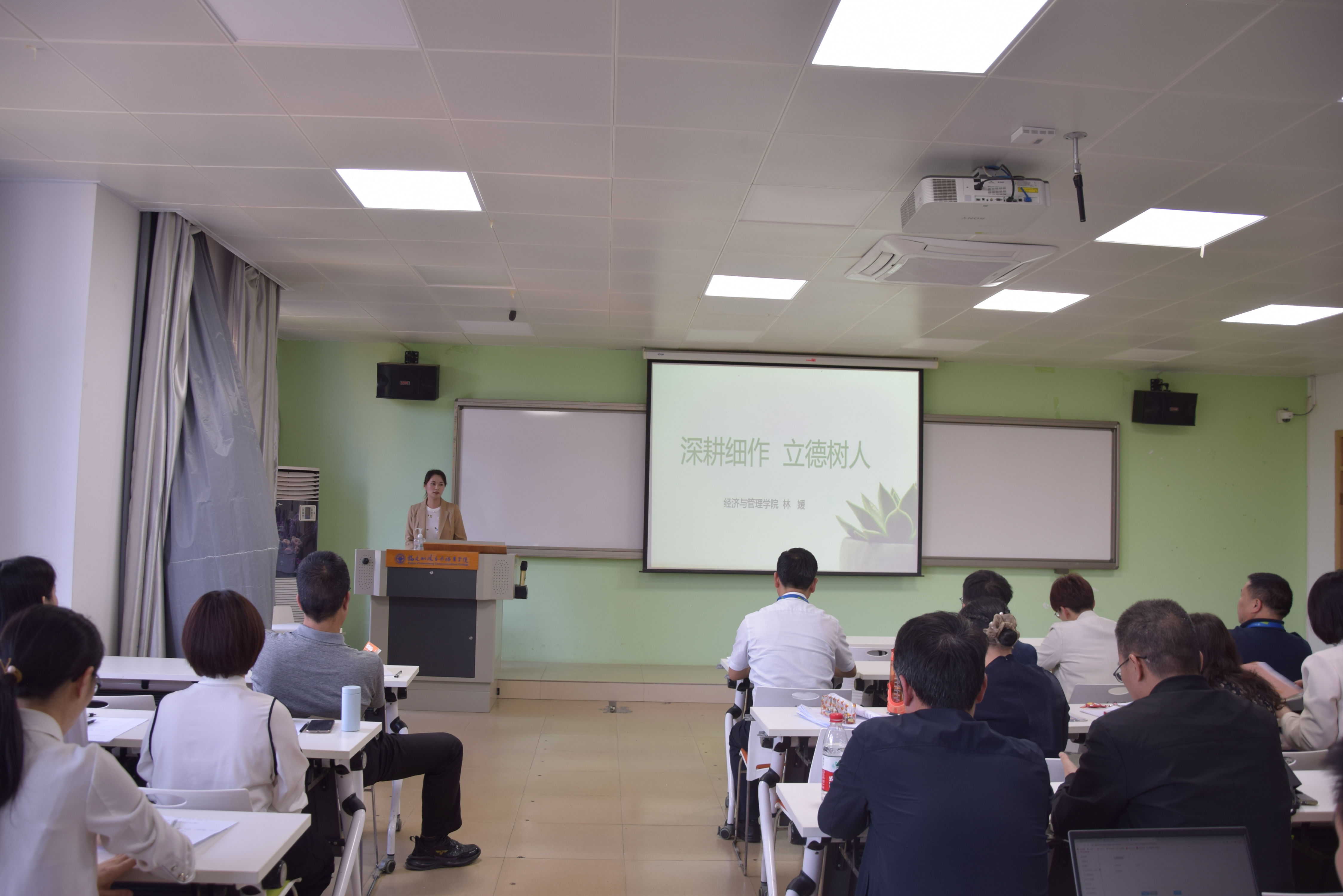 專題學(xué)習(xí)后,輔導(dǎo)員代表林媛、專任教師代表謝霓結(jié)合自身工作經(jīng)歷,分別以《深耕細(xì)作,立德樹人》《錘煉新時(shí)代師德師風(fēng),做溫暖有愛的老師》為題,以生動(dòng)詳實(shí)的案例、通俗易懂的語(yǔ)言,分享了從教以來(lái)自己對(duì)師德的感悟,讓全體教職工體會(huì)到了師德并不是簡(jiǎn)單地說(shuō)教,而是一種精神的體現(xiàn),師德師風(fēng)也不是枯躁的理念和高舉的旗幟,它就體現(xiàn)在我們身邊,在我們的隊(duì)伍里。新時(shí)代教師應(yīng)該在三尺講臺(tái)上默默耕耘,嚴(yán)愛相濟(jì)、潤(rùn)己澤人,以人格魅力呵護(hù)學(xué)生心靈,以學(xué)術(shù)造詣開啟學(xué)生智慧,讓每一個(gè)學(xué)生都健康成長(zhǎng)。