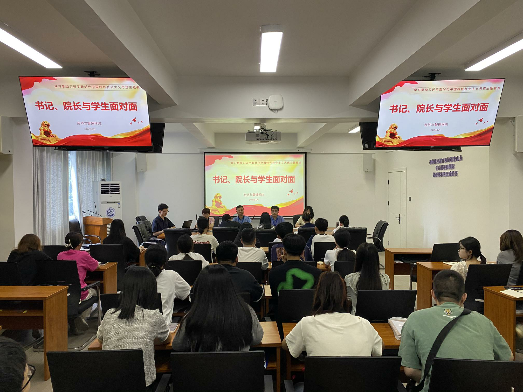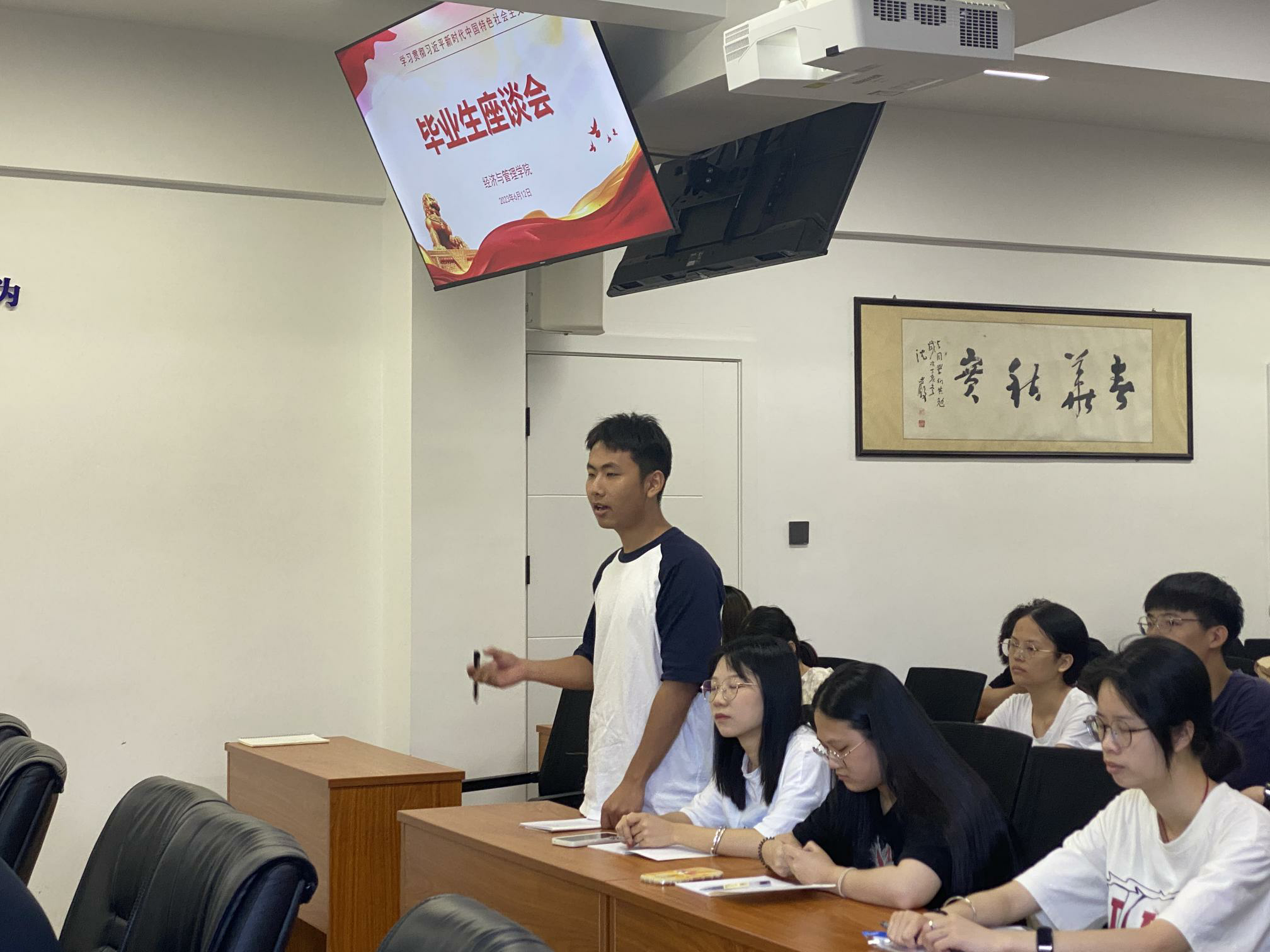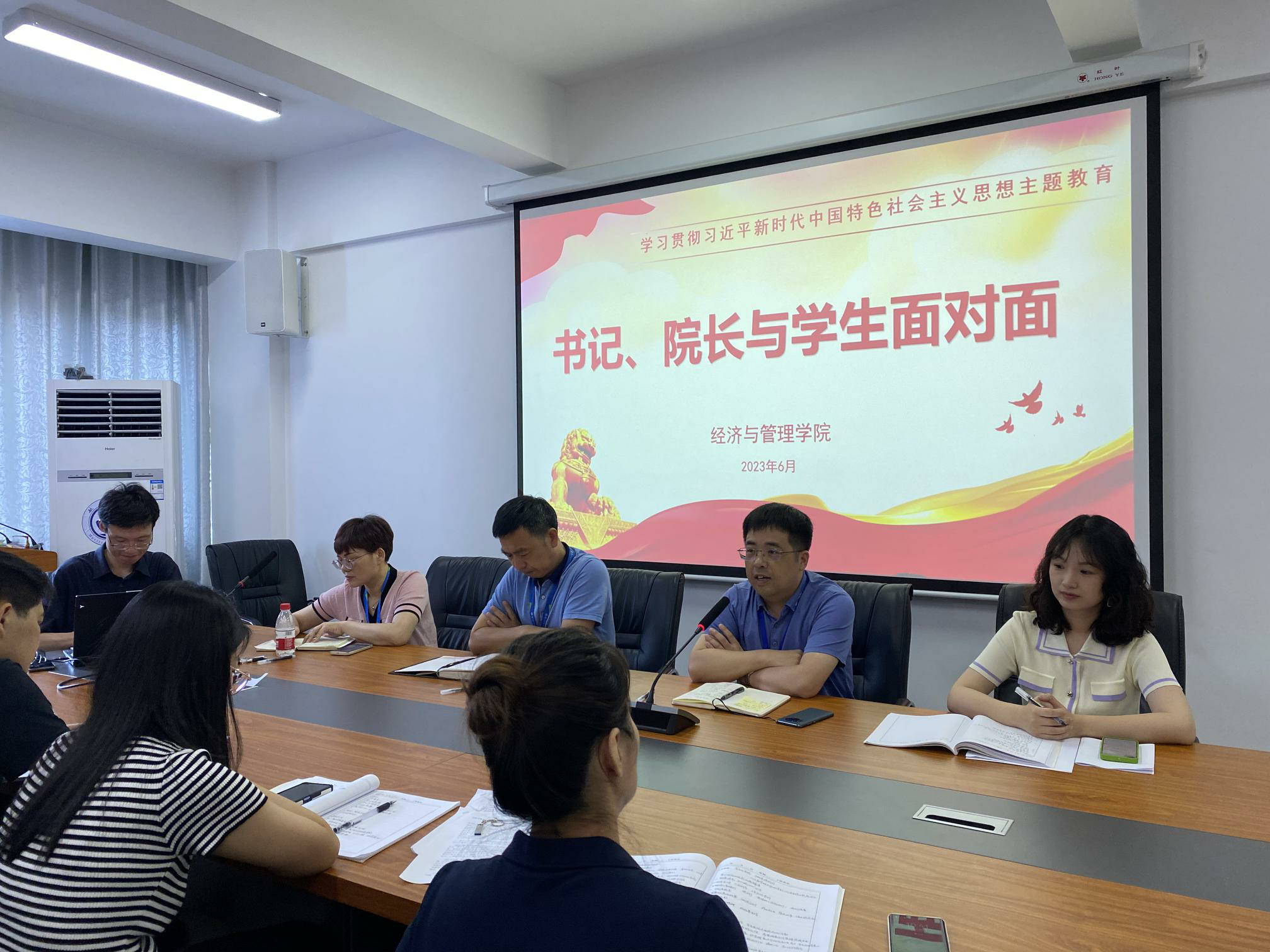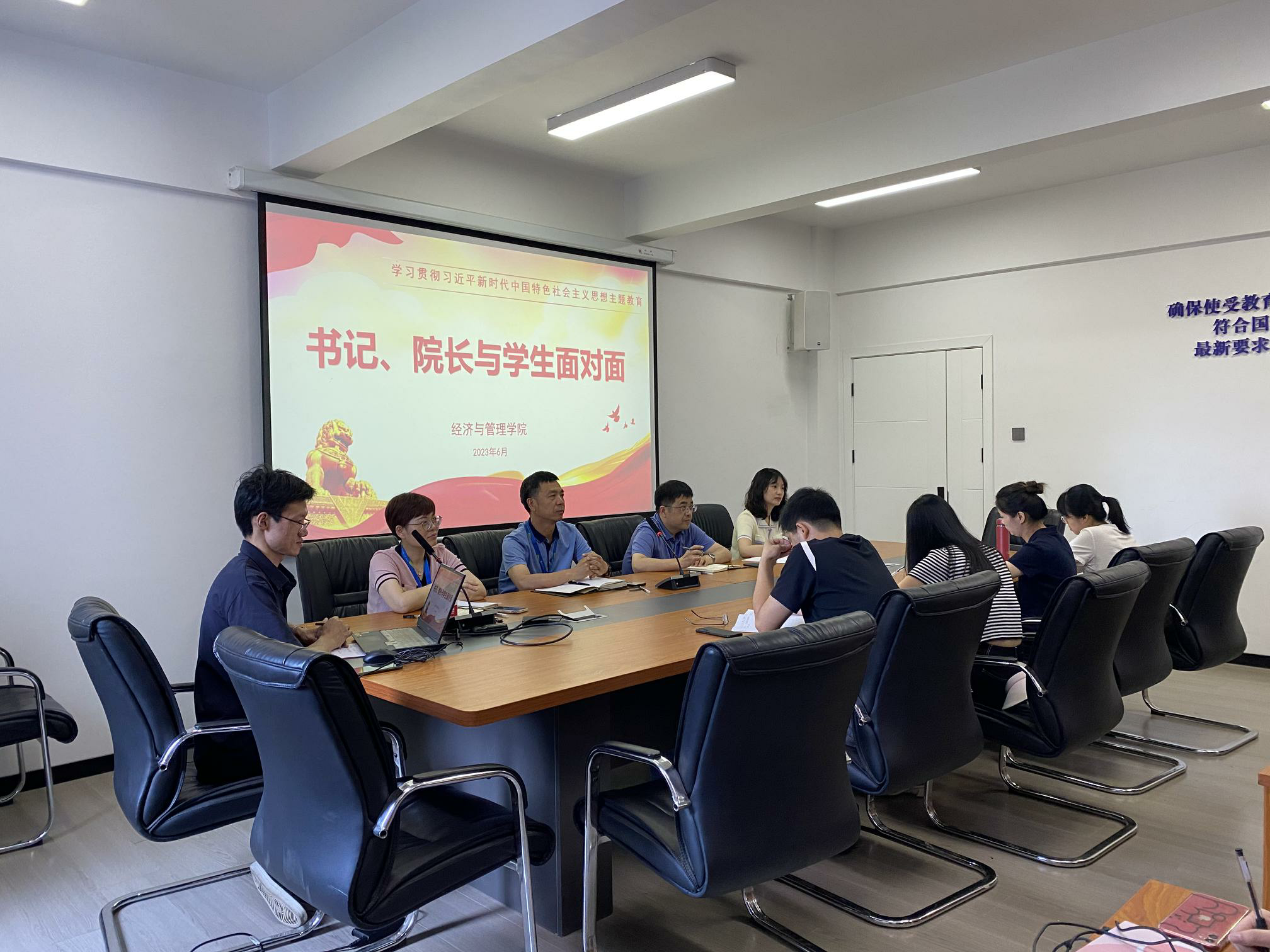 為推進學(xué)習貫徹習近平新時代中國特色社會主義思想主題教育走深走實,關(guān)心學(xué)生成長成才,聽取畢業(yè)生對學(xué)校、學(xué)院發(fā)展的意見和建議,6月12日上午,經(jīng)濟與管理學(xué)院在航海樓三樓會議室召開書記、院長與學(xué)生面對面之2023屆畢業(yè)生座談會。黨總支書記俞素平、院長房曰榮、黨總支副書記林麗萍、分團委書記傅一丹、畢業(yè)班輔導(dǎo)員以及2023屆各班畢業(yè)生代表參加了此次座談會。