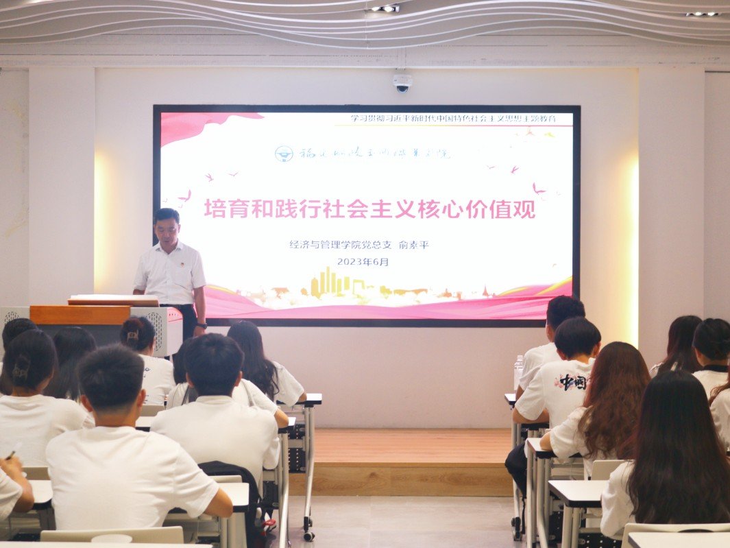為深入學(xué)習(xí)貫徹黨的二十大精神,推進(jìn)學(xué)習(xí)貫徹習(xí)近平新時代中國特色社會主義思想主題教育走深走實(shí),6月14日,經(jīng)濟(jì)與管理學(xué)院黨總支書記俞素平在黨建館開展學(xué)習(xí)貫徹習(xí)近平新時代中國特色社會主義思想主題教育專題宣講。經(jīng)濟(jì)與管理學(xué)院2022級全體入黨積極分子參加了此次宣講會。