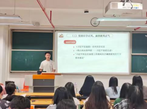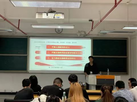 6月2日,我院團委宣傳委員王琳以“中國特色社會主義思想實現(xiàn)了馬克思主義中國化時代化新的飛躍”為主題,面向21級物流管理專業(yè)學生開展主題教育宣講。