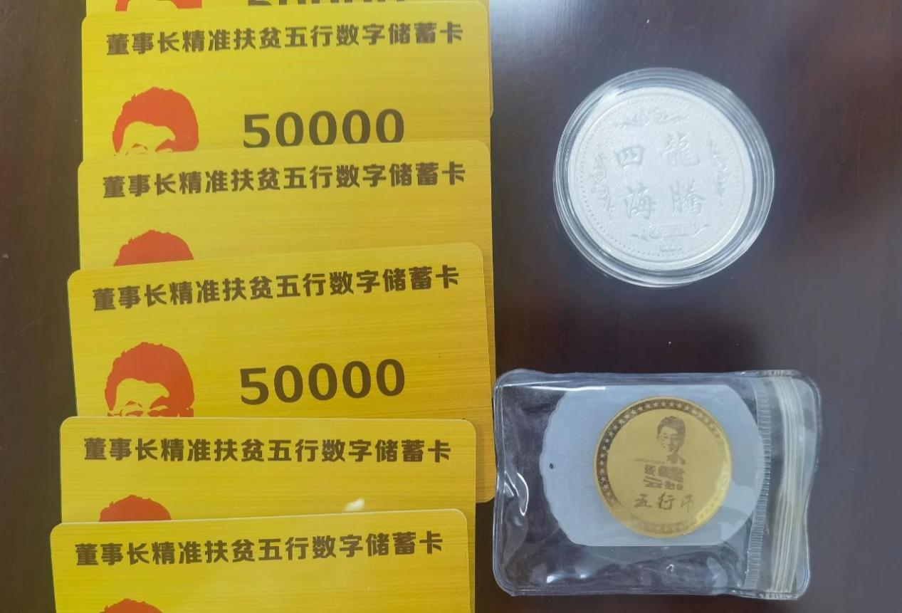 圖片詐騙團(tuán)伙向受害人提供的虛假儲(chǔ)蓄卡、“五行幣”(新華社記者王成 攝)