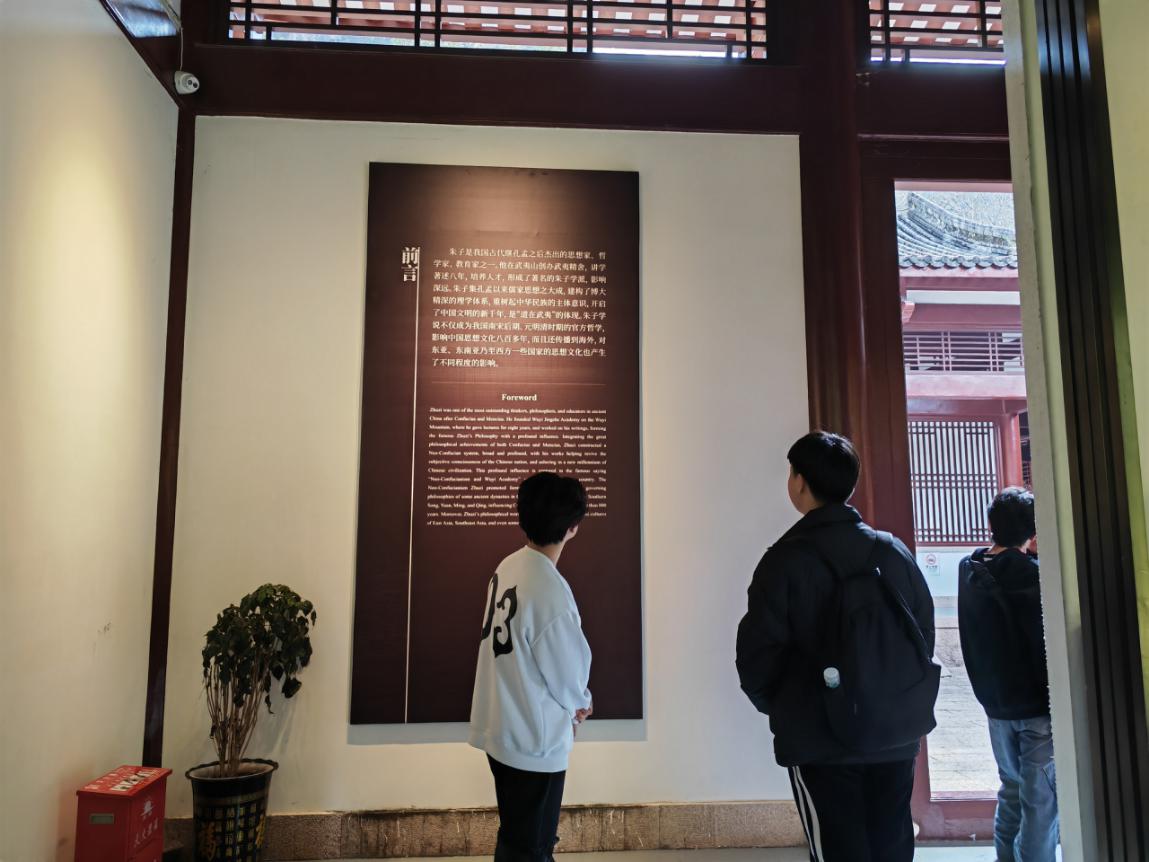 文明的長(zhǎng)河奔流不息,中華優(yōu)秀傳統(tǒng)文化是源頭活水,為中國(guó)特色社會(huì)主義注入充沛生機(jī)。武夷山是文化與自然“雙世遺”,文化遺產(chǎn)的核心就是朱子文化。沿著習(xí)近平總書(shū)記的足跡,實(shí)踐隊(duì)成員來(lái)到了朱熹園。