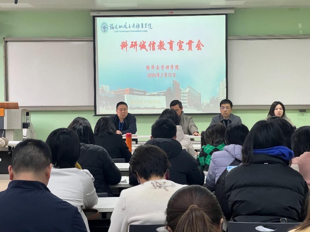 科研誠信是學術(shù)發(fā)展的基石,是科學創(chuàng)新的根本。習近平總書記強調(diào),要營造良好學術(shù)環(huán)境,弘揚學術(shù)道德和科研倫理。科技創(chuàng)新是國家發(fā)展形勢所需、大勢所趨。加強科研誠信建設,對營造良好的學術(shù)環(huán)境,引導科研人員堅守學術(shù)誠信、維護學術(shù)尊嚴具有重要意義。為此,經(jīng)濟與管理學院于2024年3月12日在求實樓407教室開展了“科研誠信”教育宣貫會。本次會議以講座形式開展,吳吉明副院長做“踐行科研誠信 做合格科研人”的報告,經(jīng)濟與管理學院全體教師參加了本次會議。