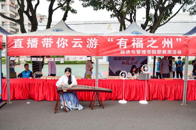 為貫徹落實習近平總書記關于職業(yè)教育的重要指示精神和黨的二十大精神,全面展示職業(yè)教育發(fā)展,深化職業(yè)教育改革成果,經濟與管理學院于5月12日在福道園文體中心前,開展直播帶你云游“有福之州”職教周活動。