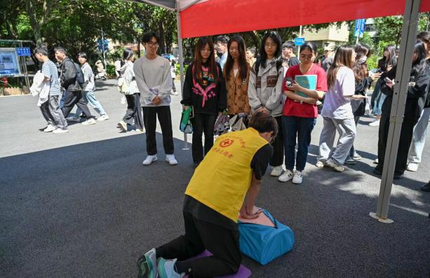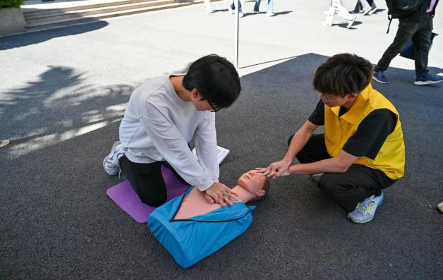 活動伊始,現(xiàn)場工作人員為同學們普及急救知識、急救包扎手法,講解了心肺復蘇的救護方法,并在現(xiàn)場利用模型進行實踐操作,工作人員手把手指導并耐心講解技術要點,對存在的問題給與耐心細致的糾正,在場學生熱情高漲,積極參與,現(xiàn)場氣氛融洽。同學們紛紛表示,通過參加這次活動,不僅豐富了應急救護知識,還提高了日常生活中遇到各種突發(fā)事件的應急救護能力。