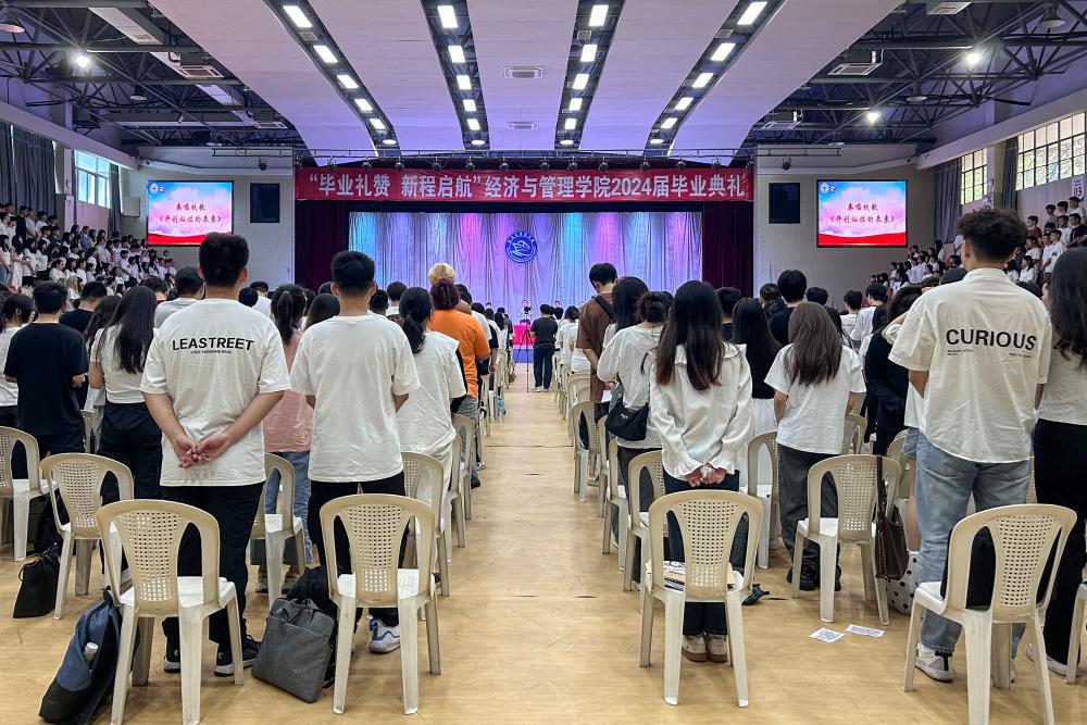 伴隨莊嚴的國歌聲,2024屆畢業(yè)典禮正式拉開帷幕。學(xué)院領(lǐng)導(dǎo)俞素平、房曰榮、林麗萍、吳吉明、林穎,各教研室主任、輔導(dǎo)員、班主任、校友代表以及2024屆全體畢業(yè)生參加儀式。典禮由副院長林穎主持。