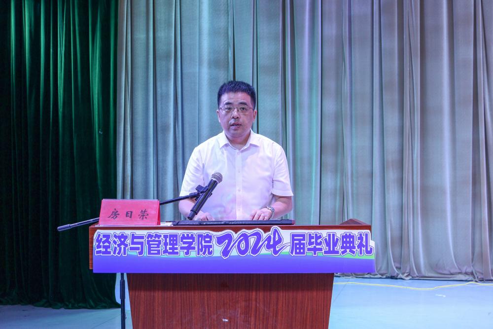 房曰榮院長在畢業(yè)典禮上滿腔熱忱地發(fā)表致辭。他向順利完成學(xué)業(yè)的2024屆畢業(yè)生表示熱烈的祝賀,向幫助同學(xué)們成長的老師們致以衷心的感謝和崇高的敬意。他回顧了這三年來同學(xué)們奮斗的足跡以及辛勤耕耘收獲的累累碩果,并向同學(xué)們提出了殷切希望:第一、守誠信,樹品格。希望同學(xué)們培養(yǎng)良好的品格和習(xí)慣,遵守社會公德和職業(yè)道德,不斷提升自己的品行修養(yǎng),為社會的發(fā)展貢獻力量;第二、追卓越,重實干。希望同學(xué)們賡續(xù)我?!熬媲缶?,密益求密”校風(fēng),以“一鼓作氣”的干勁、“一馬當先”的拼勁、“一往無前”的闖勁,在新時代新征程上留下青春的足跡;第三、立大志,擔(dān)使命。希望同學(xué)們樹立遠大的理想和抱負,自覺將社會責(zé)任銘記于心、付諸行動,將個人夢想融入民族復(fù)興的偉大事業(yè),讓青春在時代浪潮中激蕩出澎湃的浪花。