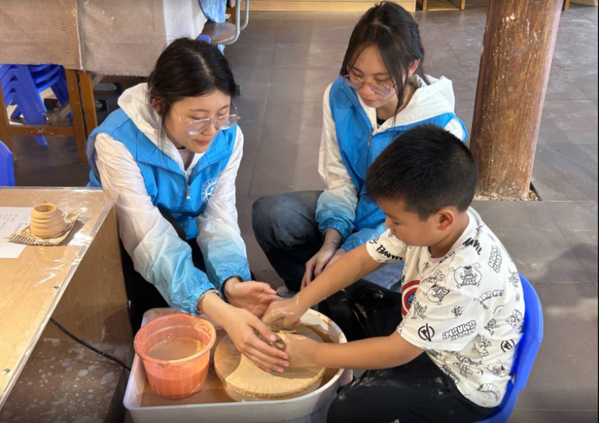 實踐團成員引導孩子們完成陶藝作品
