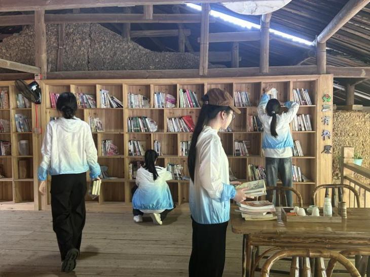 實踐團在整理村圖書室