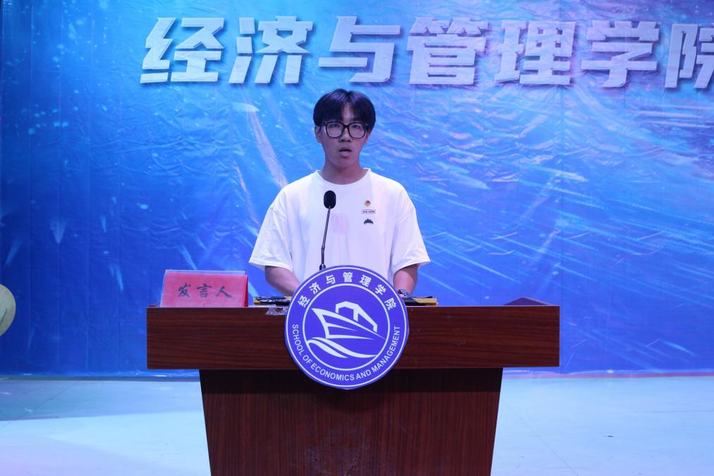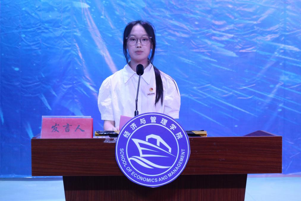 新生輔導(dǎo)員代表林慶希發(fā)言。他希望新生們做身心強(qiáng)大的勇者,不要害怕失敗,以勇敢的心態(tài)面對問題;做時間管理的自洽者,學(xué)會適時調(diào)整和掌握自己的節(jié)奏,平衡學(xué)習(xí)與生活;更要做遠(yuǎn)馳時代的揚(yáng)帆者,將個人命運(yùn)與國家前途緊密相連,為實現(xiàn)中華民族偉大復(fù)興貢獻(xiàn)力量。