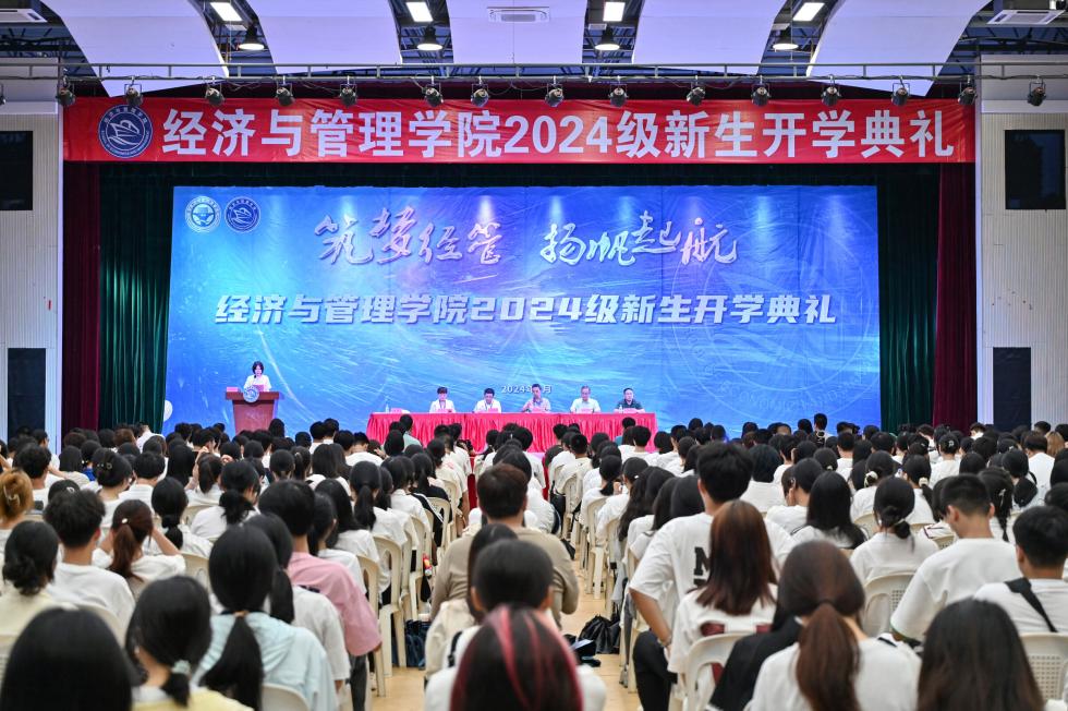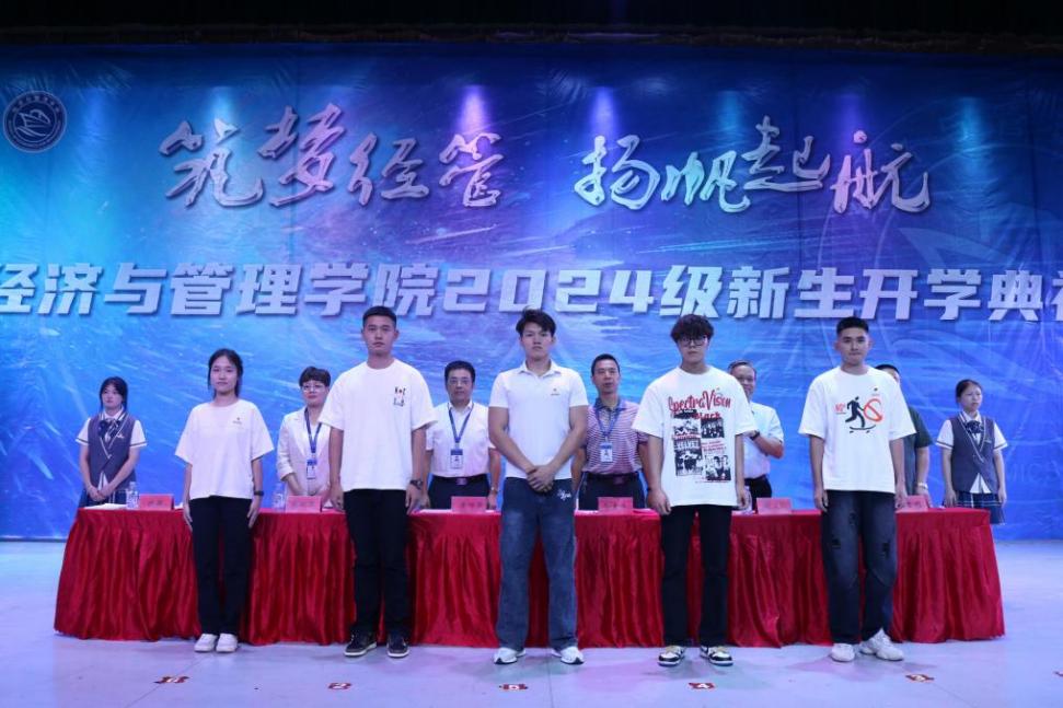 年華正茂啟新篇,矢志前行筑夢圓。2024年9月25日,經(jīng)濟(jì)與管理學(xué)院2024級新生開學(xué)典禮在文體中心隆重舉行。經(jīng)濟(jì)與管理學(xué)院黨總支書記俞素平,院長房曰榮,廈門市海滄區(qū)職業(yè)中專學(xué)校副校長謝文輝,經(jīng)濟(jì)與管理學(xué)院黨總支副書記林麗萍,副院長吳吉明、林穎,團(tuán)委書記傅一丹等領(lǐng)導(dǎo)出席典禮,經(jīng)濟(jì)與管理學(xué)院各教研室主任,廈門市海滄區(qū)職業(yè)中專學(xué)校教師,2024級新生輔導(dǎo)員、班主任及全體新生、助導(dǎo)到場參加。典禮由副院長林穎主持。