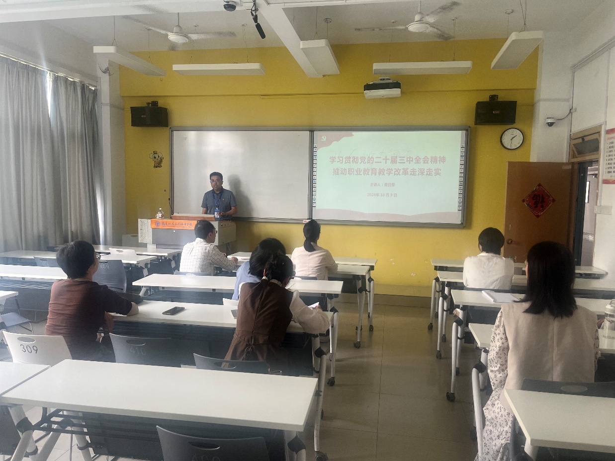 房曰榮院長指出全會審議通過的《中共中央關(guān)于進一步全面深化改革、推進中國式現(xiàn)代化的決定》,是在新的歷史起點上推進全面深化改革的又一次總動員、總部署。要深入學習全會精神,將學習成果轉(zhuǎn)化為推動職業(yè)教育教學改革的具體行動。要深化產(chǎn)教融合、校企合作,創(chuàng)新人才培養(yǎng)模式,構(gòu)建教學標準體系,健全教學質(zhì)量管理和保障制度,全面提高職業(yè)教育人才培養(yǎng)質(zhì)量。