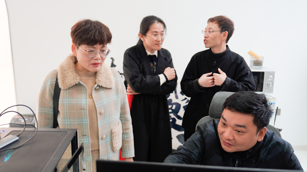在炬人傳媒公司負(fù)責(zé)人的引導(dǎo)下,學(xué)院代表重點(diǎn)參觀了企業(yè)數(shù)字營(yíng)銷中心、創(chuàng)意策劃部等核心板塊,實(shí)地體驗(yàn)“互聯(lián)網(wǎng)+傳媒”創(chuàng)新生態(tài)。炬人傳媒負(fù)責(zé)人系統(tǒng)展示了短視頻運(yùn)營(yíng)、AI創(chuàng)作實(shí)訓(xùn)等特色項(xiàng)目,特別介紹了與學(xué)院專業(yè)高度契合的“數(shù)字營(yíng)銷人才孵化基地”建設(shè)成果。