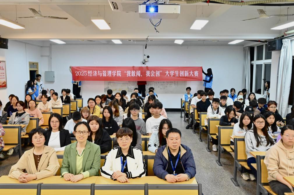 為貫徹落實(shí)黨的二十大精神,深入貫徹落實(shí)習(xí)近平總書記關(guān)于教育的重要論述和給“青年紅色筑夢之旅”大學(xué)生回信及中國國際大學(xué)生創(chuàng)新大賽參賽學(xué)生代表重要回信精神,全面推進(jìn)教育、科技、人才工作,把創(chuàng)新教育貫穿教育活動全過程,以創(chuàng)造之教育培養(yǎng)創(chuàng)造之人才,持續(xù)深化我院創(chuàng)新創(chuàng)業(yè)教育改革、提升大學(xué)生創(chuàng)新創(chuàng)業(yè)能力,經(jīng)濟(jì)與管理學(xué)院于2025年4月10日在求實(shí)樓408教室舉辦“我敢闖、我會創(chuàng)”大學(xué)生創(chuàng)新大賽。