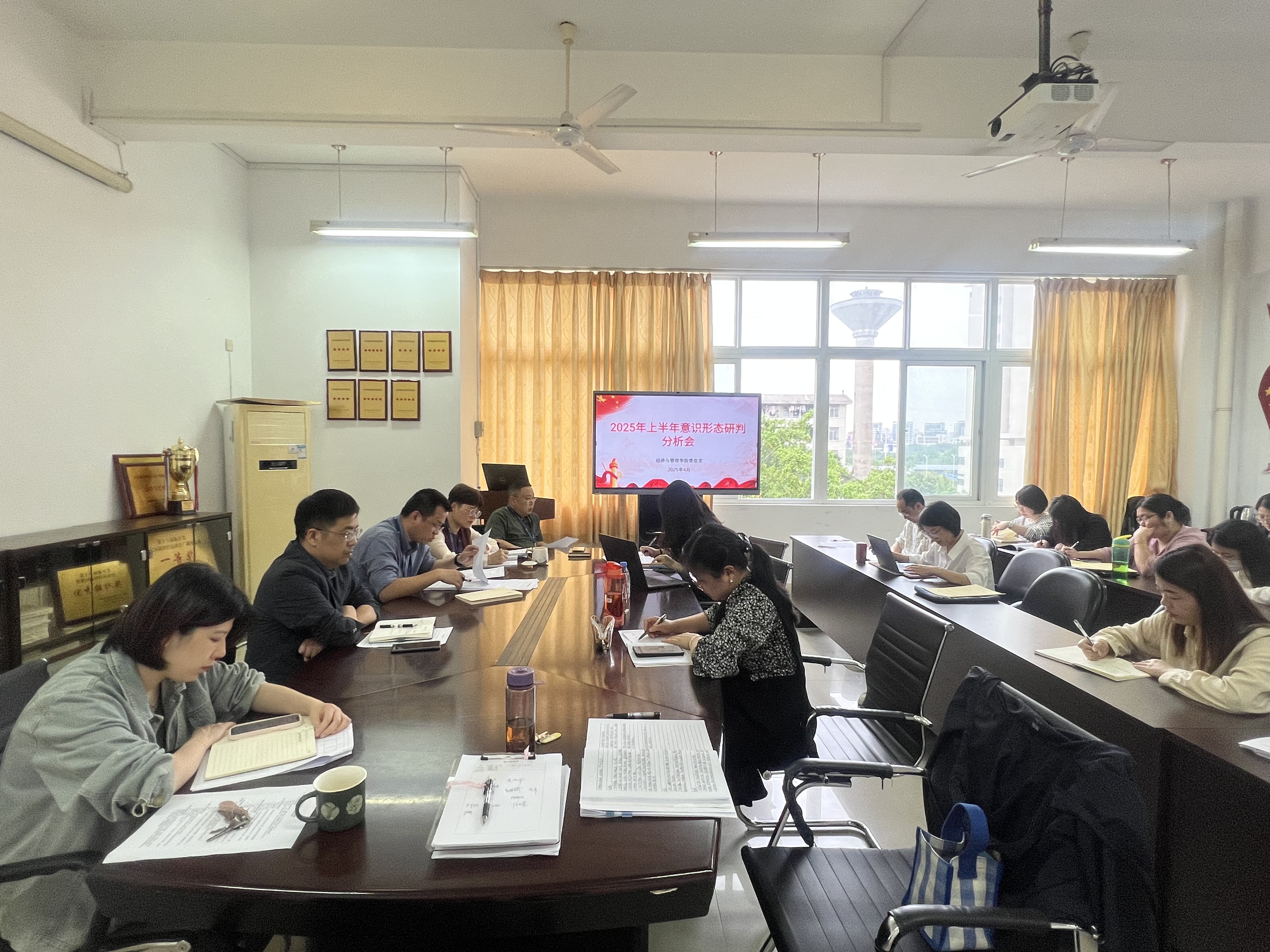 為深入貫徹落實習(xí)近平總書記關(guān)于意識形態(tài)工作的重要論述,為全面貫徹黨中央、學(xué)院黨委關(guān)于意識形態(tài)工作的決策部署,進(jìn)一步強(qiáng)化風(fēng)險防控意識切實加強(qiáng)學(xué)院意識形態(tài)工作,2025年4月23日,經(jīng)濟(jì)與管理學(xué)院2024-2025學(xué)年第二學(xué)期意識形態(tài)分析研判會在福船園求實樓412會議室召開。學(xué)院副科級及以上干部、各黨支部書記、副書記、各教研室主任、全體輔導(dǎo)員參加了會議。會議由黨總支副書記阮毅主持。